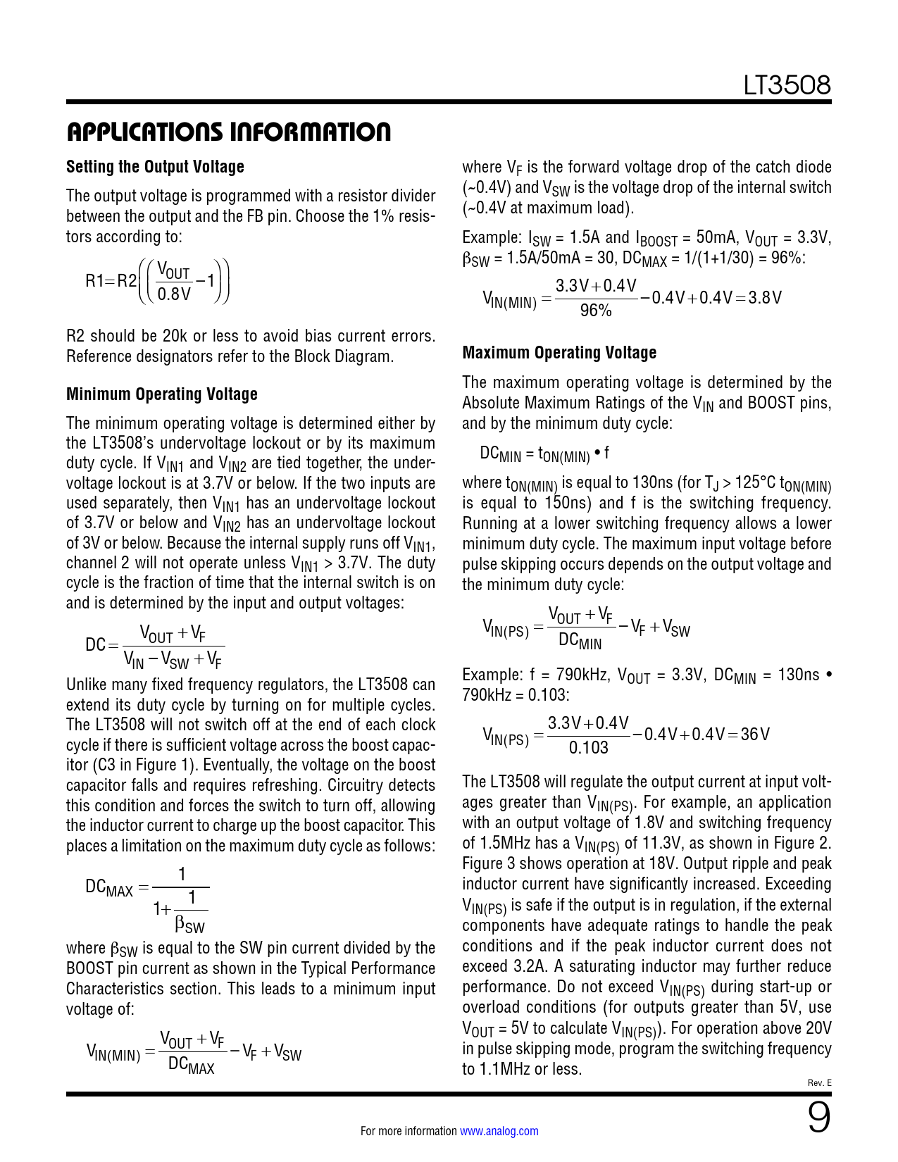 APPLICATIONS INFORMATION Setting the Output Voltage Maximum Operating Voltage Minimum Operating Voltage