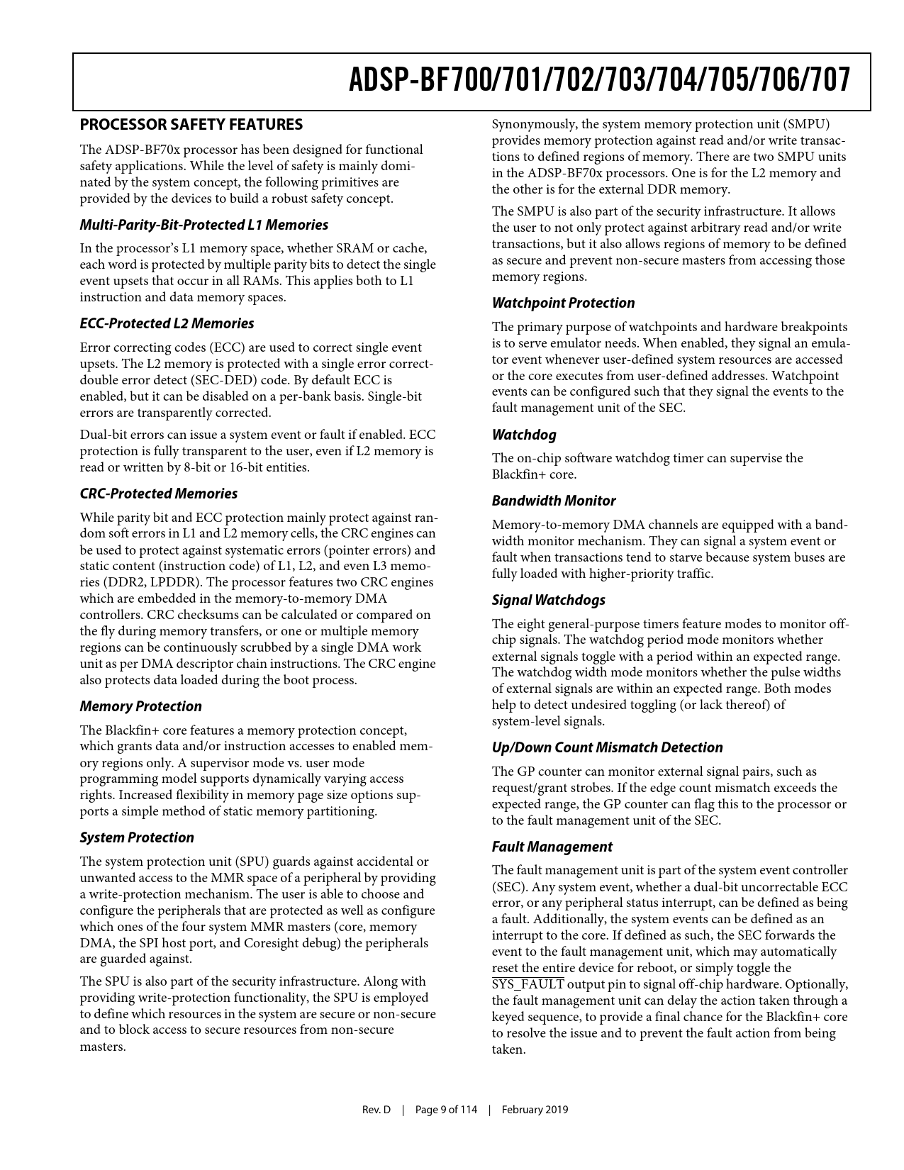 Pages / Page114 / 9 — ADSP-BF700/701/702/703/704/705/706/707. PROCESSOR SAFETY FEATURES. …