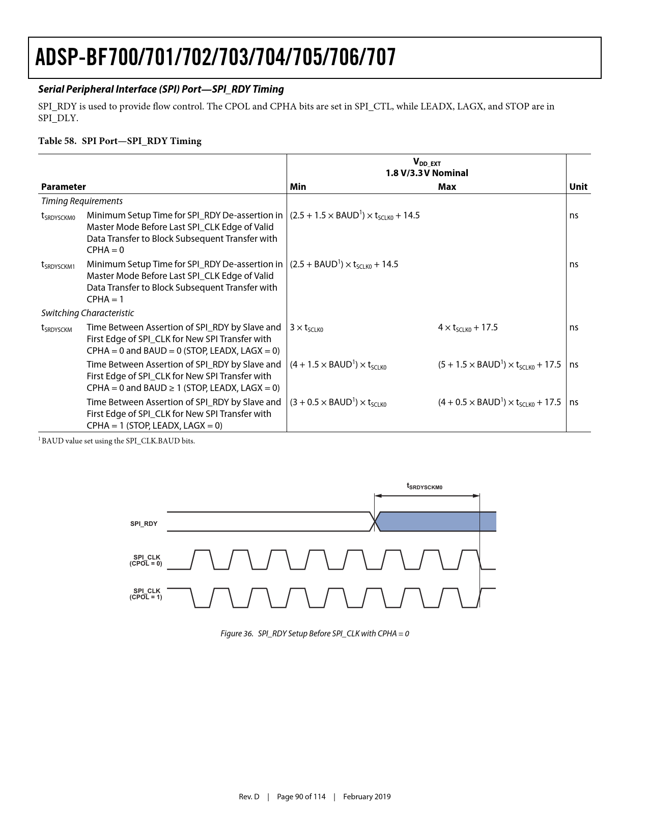 Table 58. SPI Port—SPI_RDY Timing VDD_EXT 1.8 V/3.3 V Nominal Parameter Min Max Unit