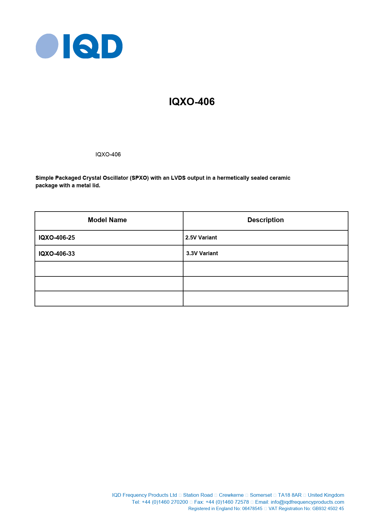 DatasheetsDatasheet IQXO-406-25, IQXO-406-33 (IQD)