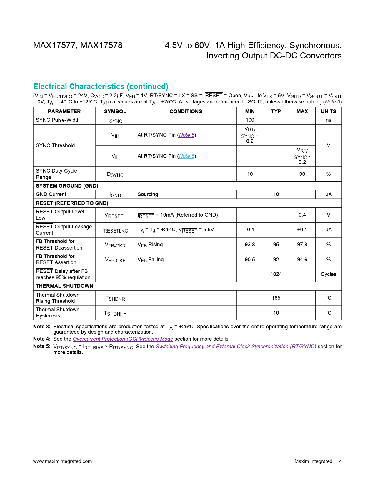 link to page 4 link to page 4 link to page 4 link to page 15 link to page 13 MAX17577, MAX17578 4.5V to 60V, 1A High-Efficiency, Synchronous, Inverting Output DC-DC Converters