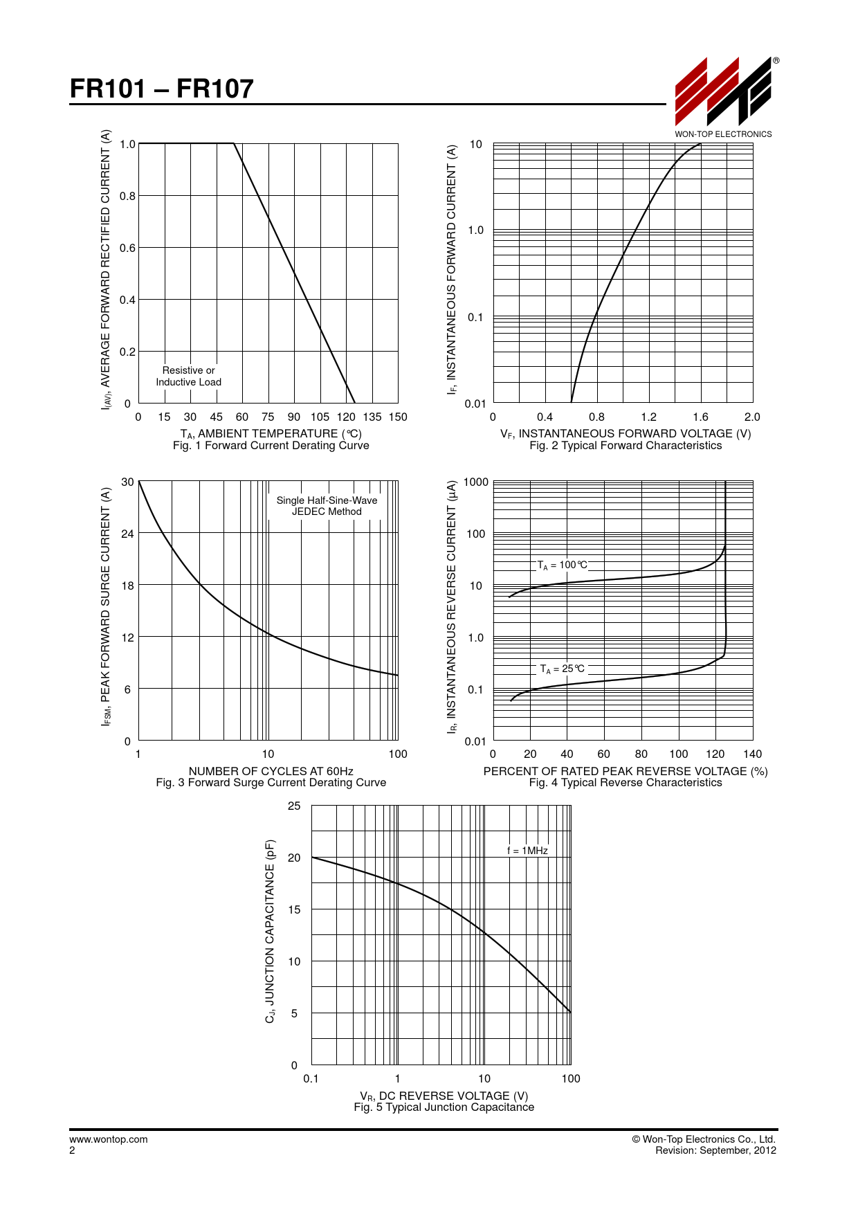Datasheet FR101, FR102, FR103, FR104, FR105, FR106, FR107 (Won-Top Electronics) - 2