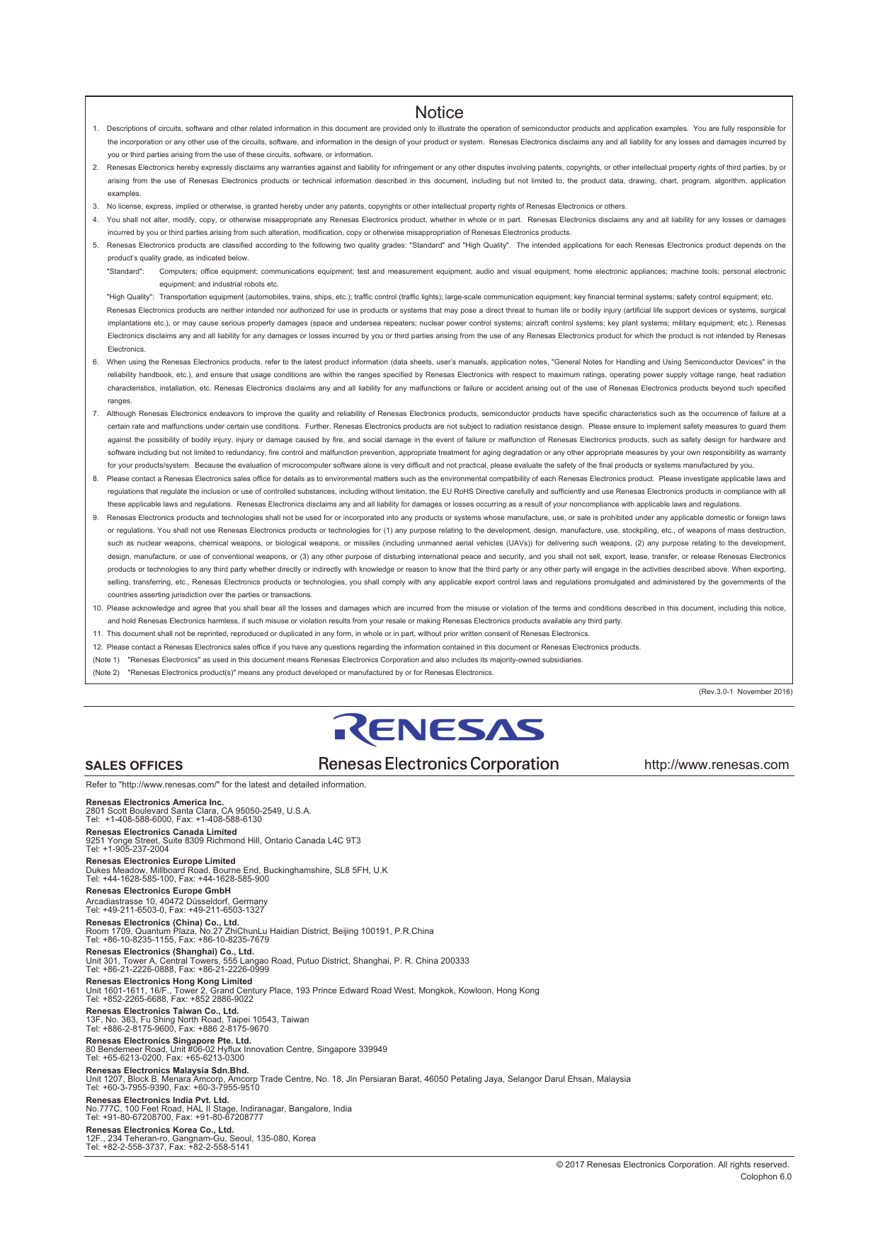 12F., 234 Teheran-ro, Gangnam-Gu, Seoul, 135-080, Korea Tel: +82-2-558-3737, Fax: +82-2-558-5141 © 2017 Renesas Electronics Corporation. All rights reserved. Colophon 6.0
