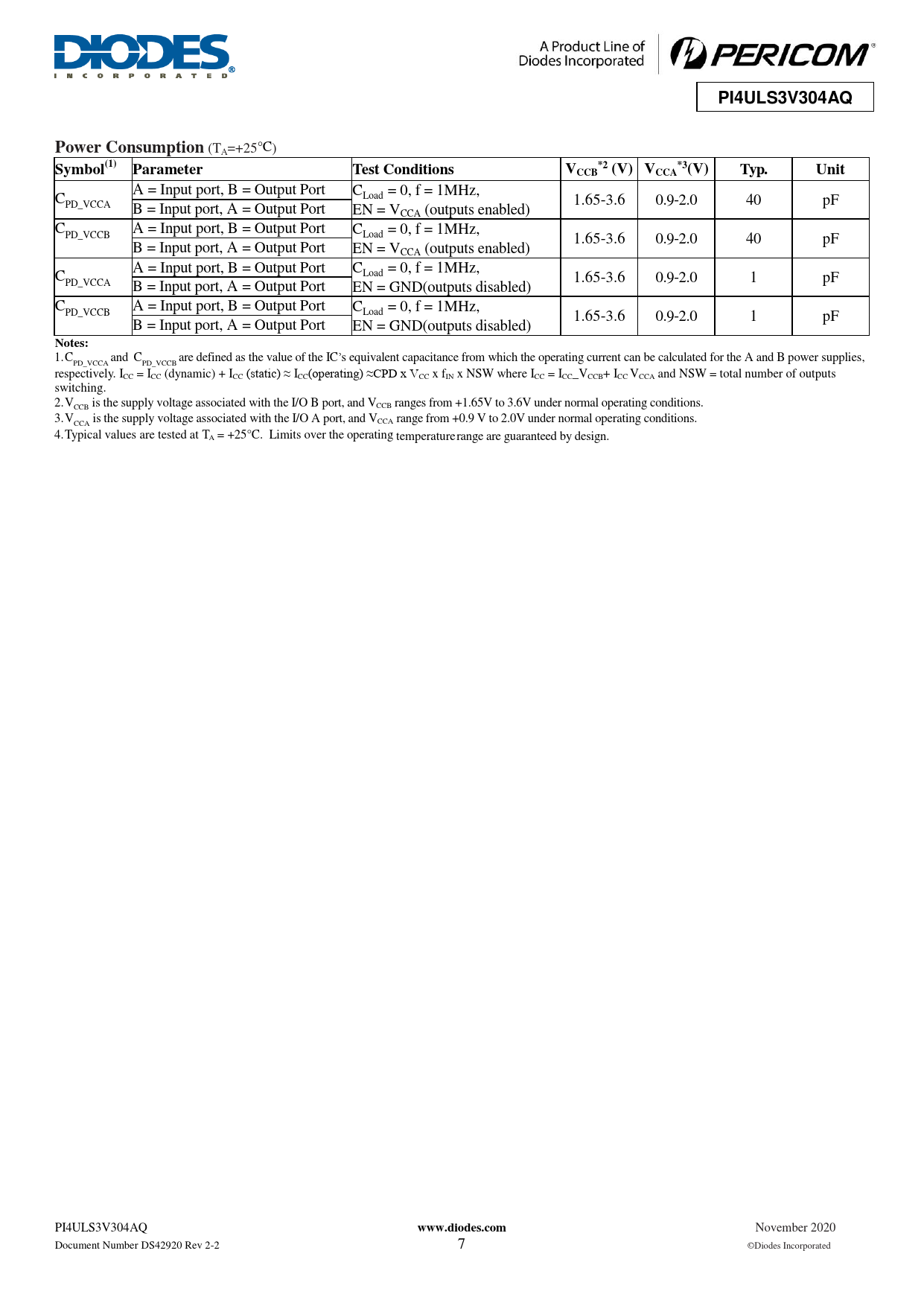 PI4ULS3V304AQ. Power Consumption. Symbol(1) Parameter. Test Conditions. CCB. (V). VCCA (V). Typ. Unit. Notes:. www.diodes.com