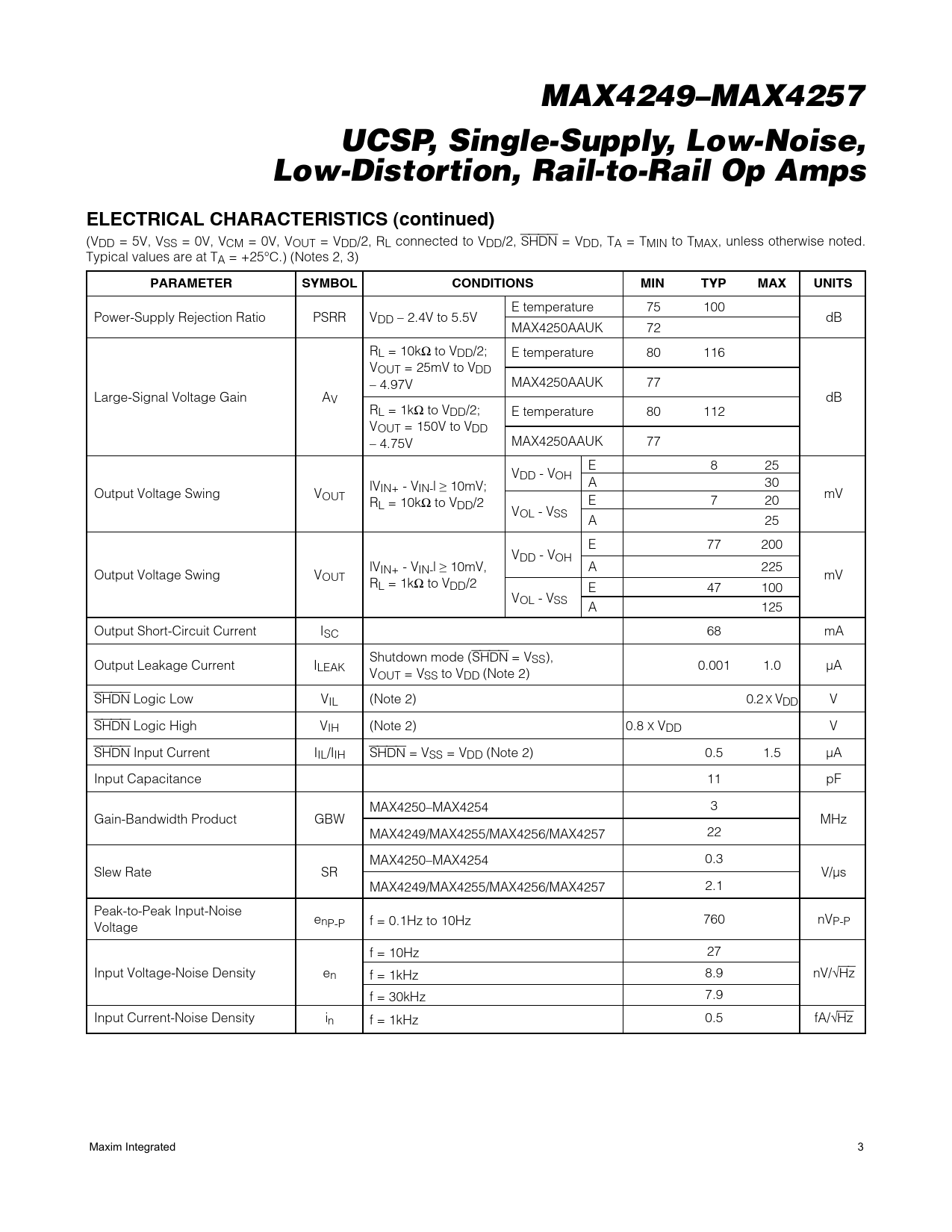 MAX4249–MAX4257 UCSP, Single-Supply, Low-Noise, Low-Distortion, Rail-to-Rail Op Amps