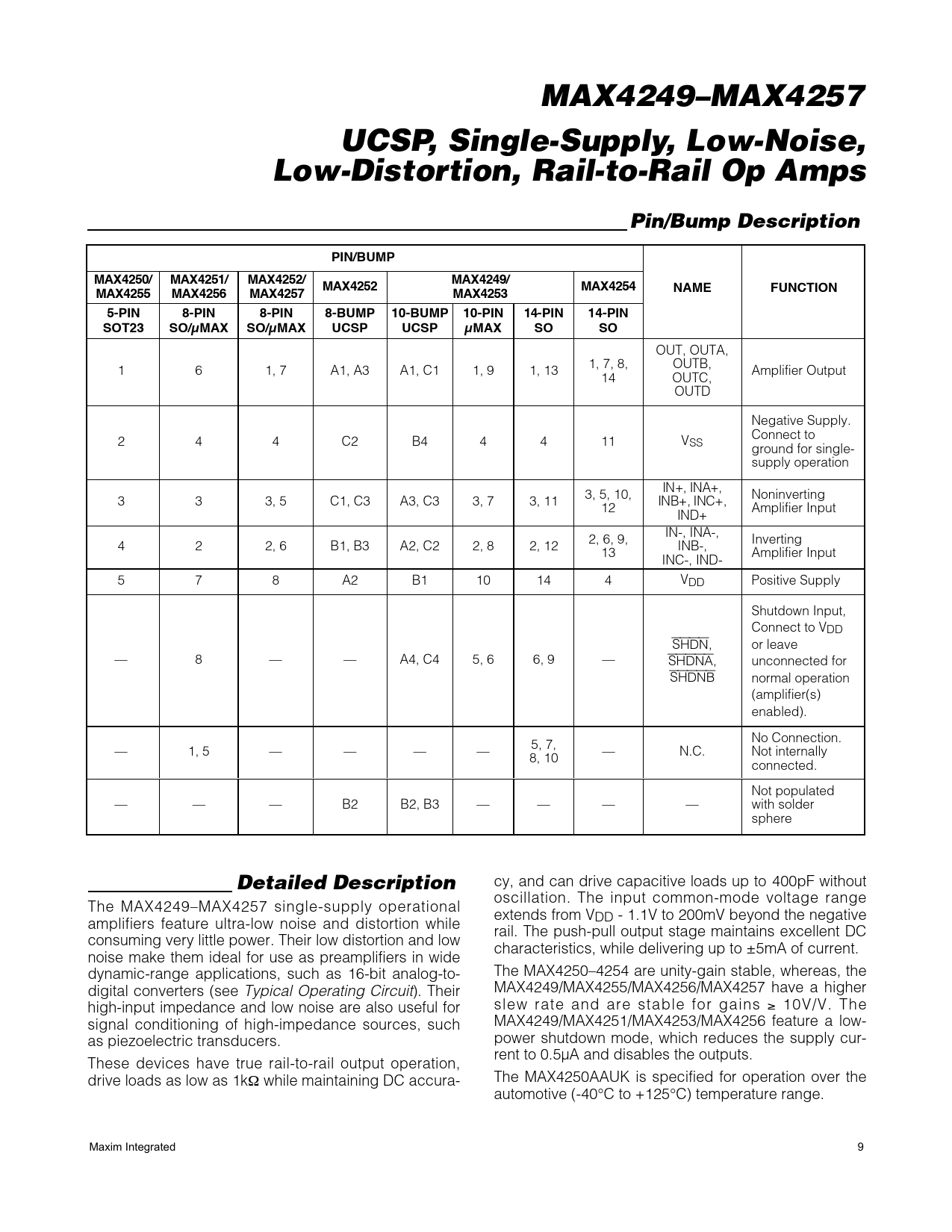 MAX4249–MAX4257 UCSP, Single-Supply, Low-Noise, Low-Distortion, Rail-to-Rail Op Amps Pin/Bump Description