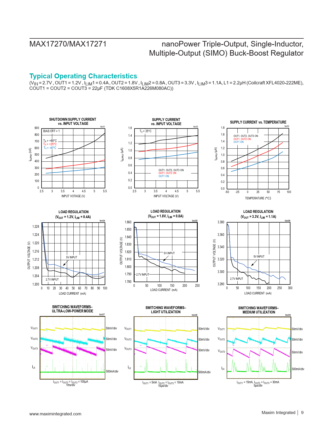 MAX17270/MAX17271 nanoPower Triple-Output, Single-Inductor, Multiple-Output (SIMO) Buck-Boost Regulator