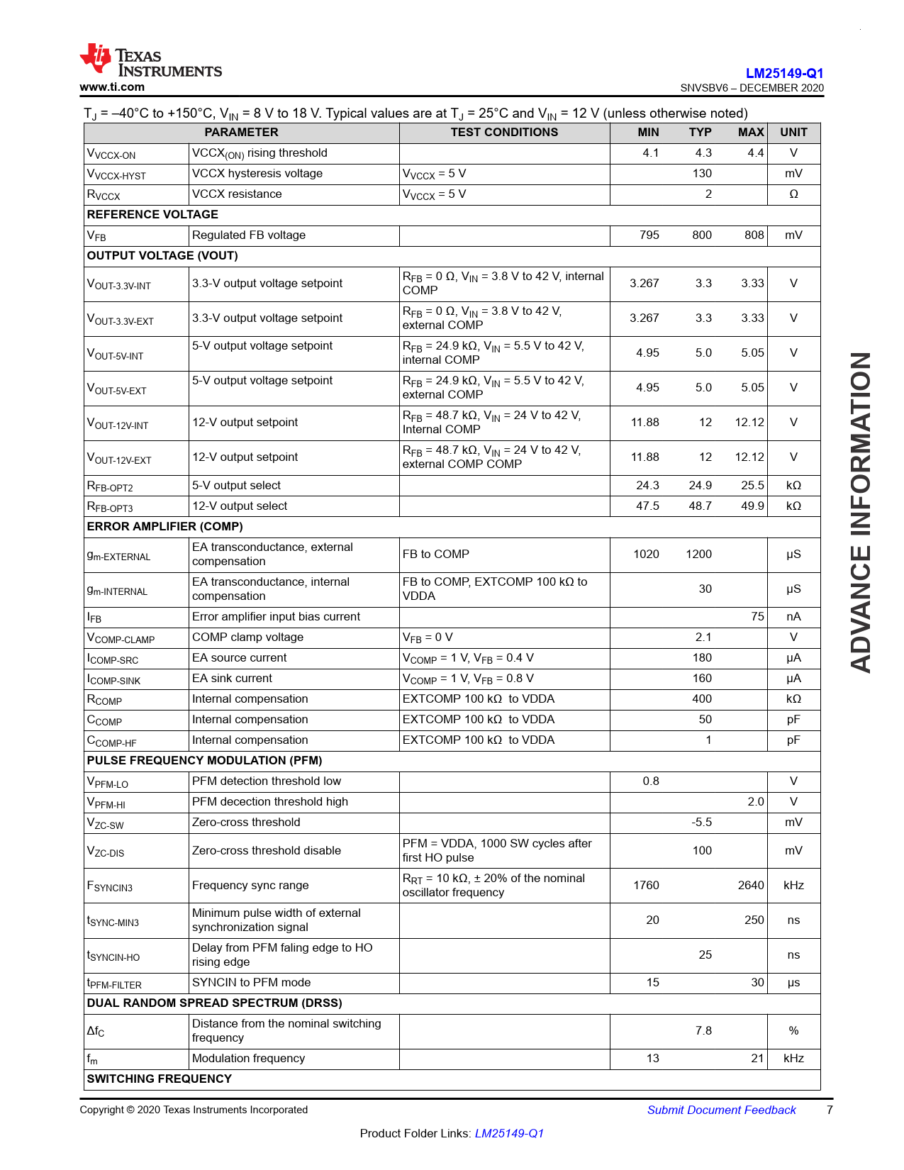 LM25149-Q1. www.ti.com. PARAMETER. TEST CONDITIONS. MIN. TYP. MAX. UNIT. REFERENCE VOLTAGE. OUTPUT VOLTAGE (VOUT). TION