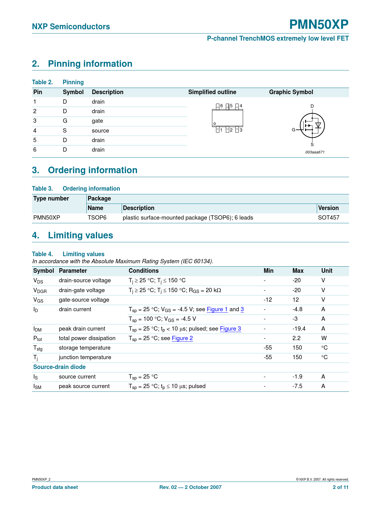 Product data sheet Rev. 02 — 2 October 2007 2 of 11