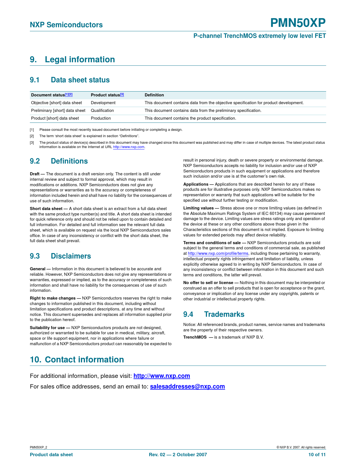 Product data sheet Rev. 02 — 2 October 2007 10 of 11