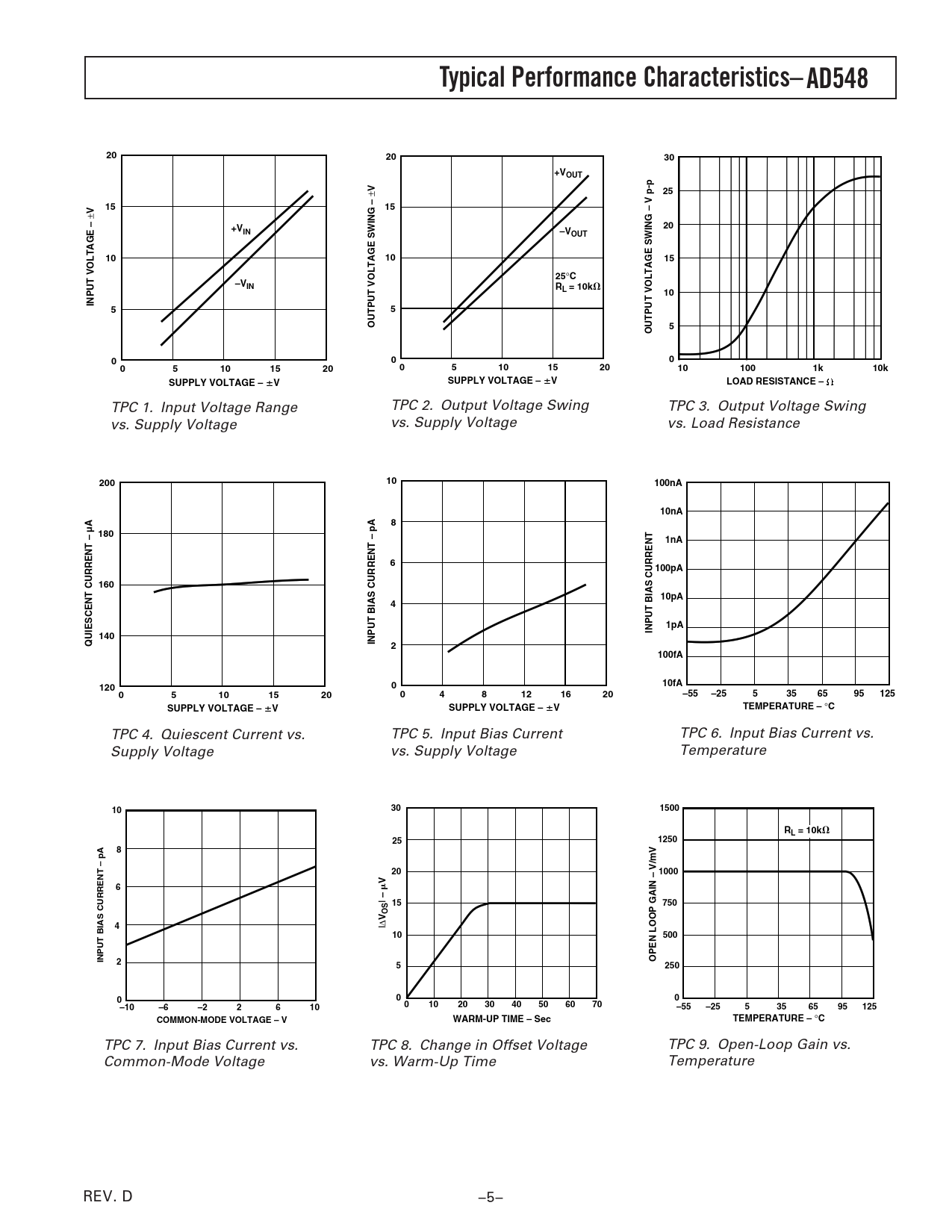 Typical Performance Characteristics– AD548 +VOUT –VOUT –VIN RL = 10k INPUT VOLTAGE – OUTPUT VOLTAGE SWING –