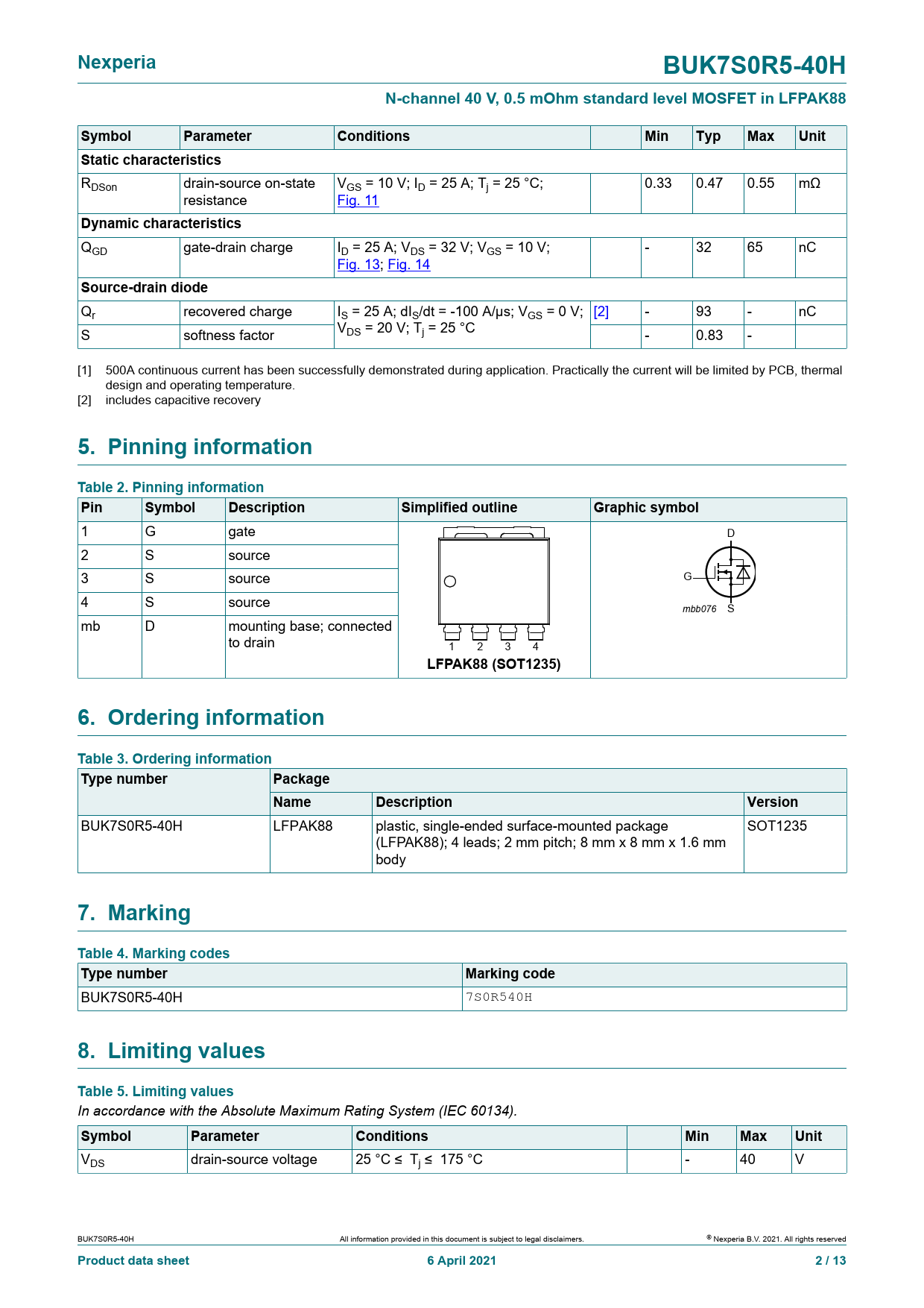 Product data sheet 6 April 2021 2 / 13