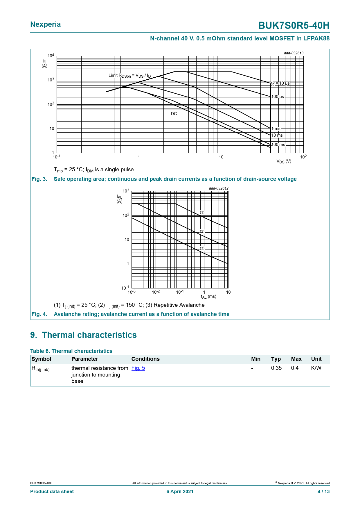 Rth(j-mb) thermal resistance from Fig. 5 - 0.35 0.4 K/W junction to mounting base BUK7S0R5-40H All information provided in this document is subject to legal disclaimers. © Nexperia B.V. 2021. Al rights reserved