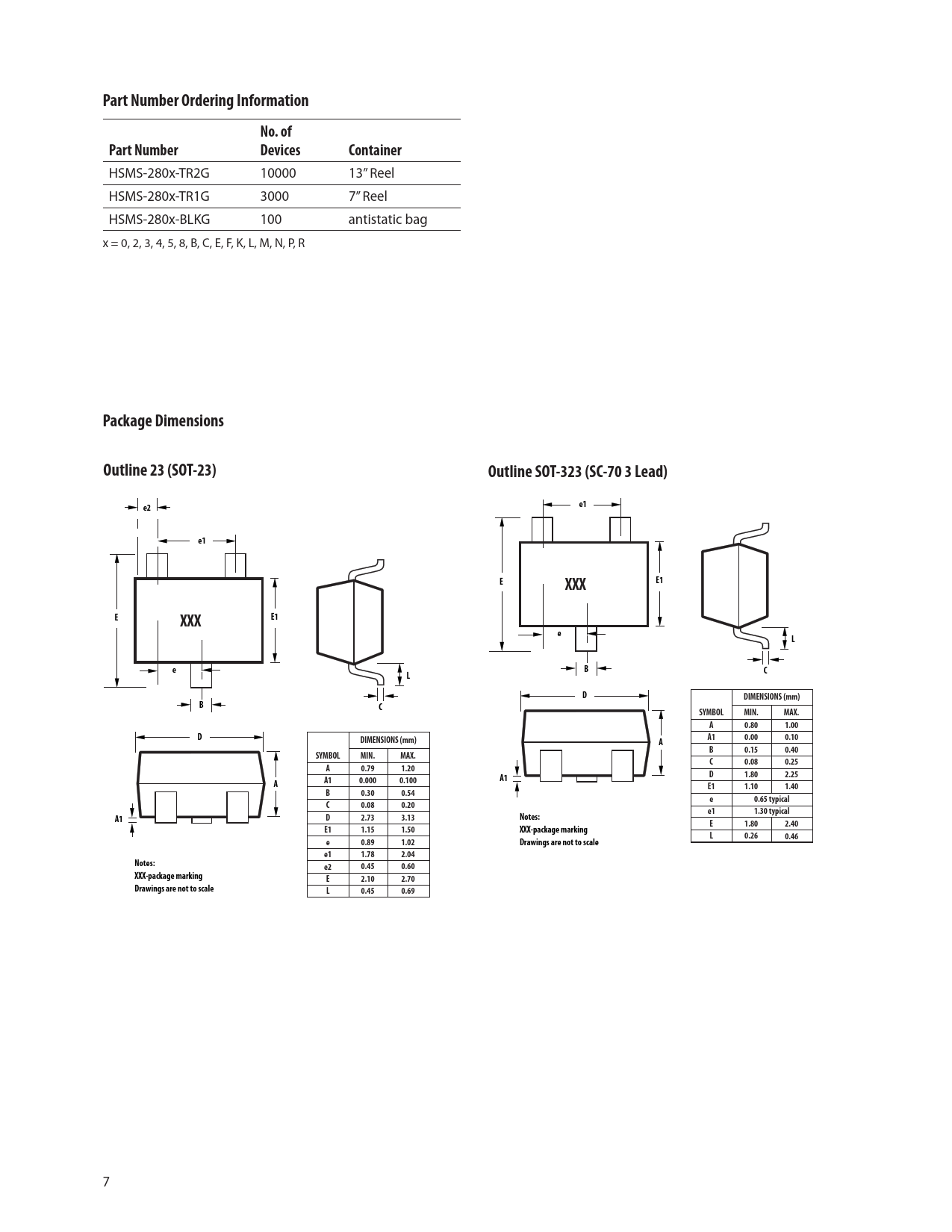 Part Number Ordering Information. No. of. Part Number. Devices. Container. Package Dimensions. Outline 23 (SOT-23)