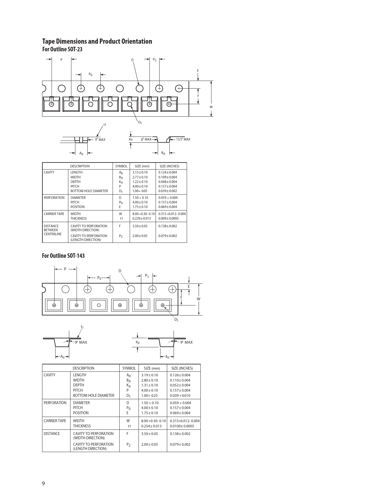 Tape Dimensions and Product Orientation For Outline SOT-23. For Outline SOT-143
