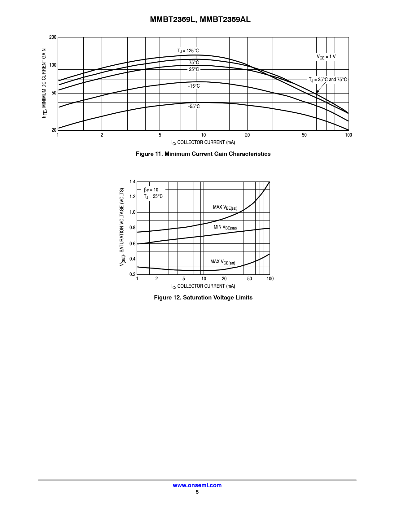 MMBT2369L, MMBT2369AL. Figure 11. Minimum Current Gain Characteristics. Figure 12. Saturation Voltage Limits. www.onsemi.com