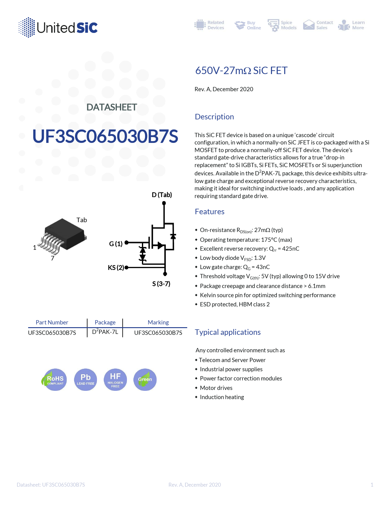 Datasheet UF3SC065030B7S (UnitedSiC)