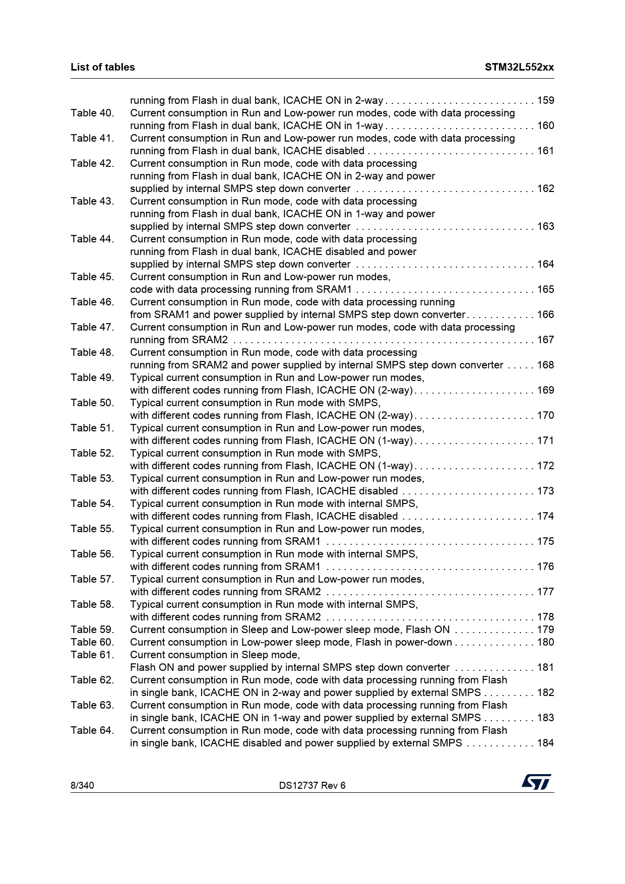 Pages / Page340 / 8 — List of tables. STM32L552xx