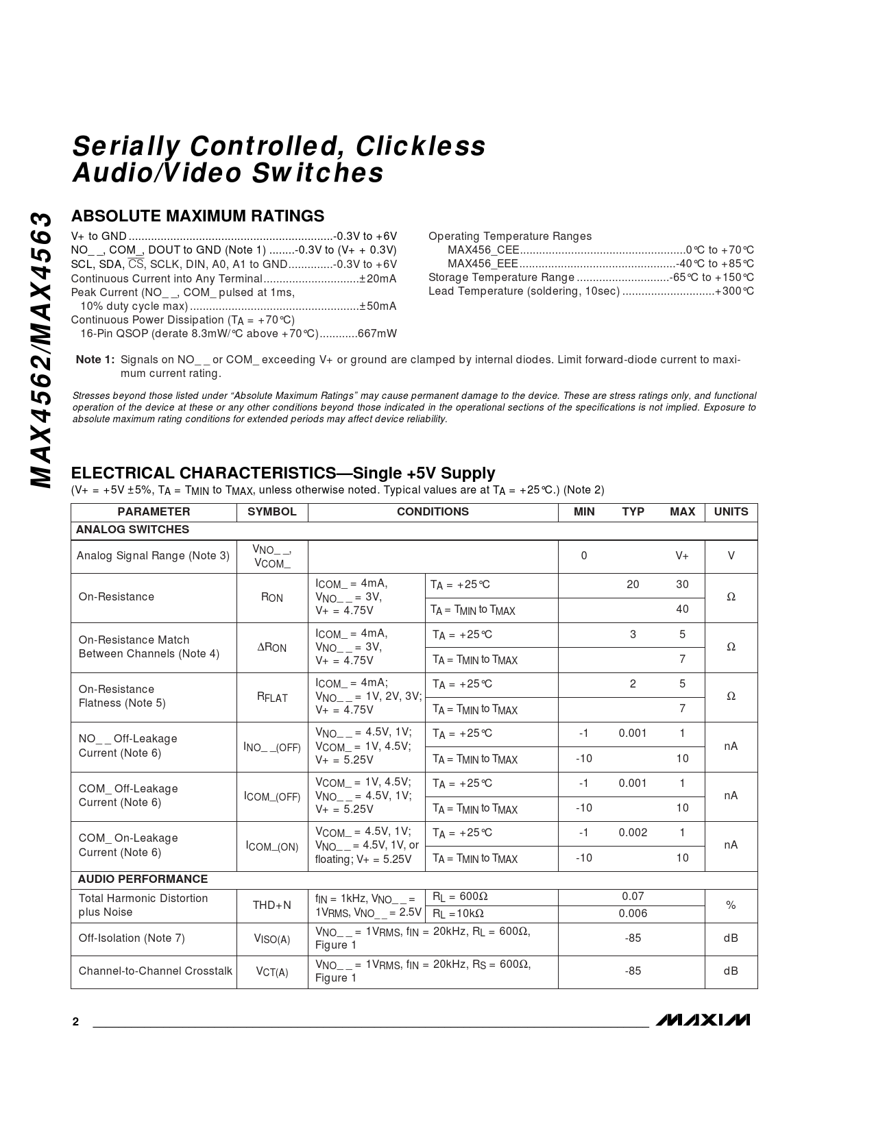 Pages / Page16 / 2 — Serially Controlled, Clickless Audio/Video Switches. ABSOLUTE MAXIMUM …
