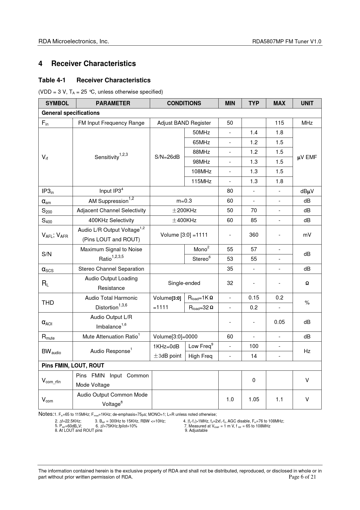 Datasheet RDA5807MP (RDA Microelectronics) - 6