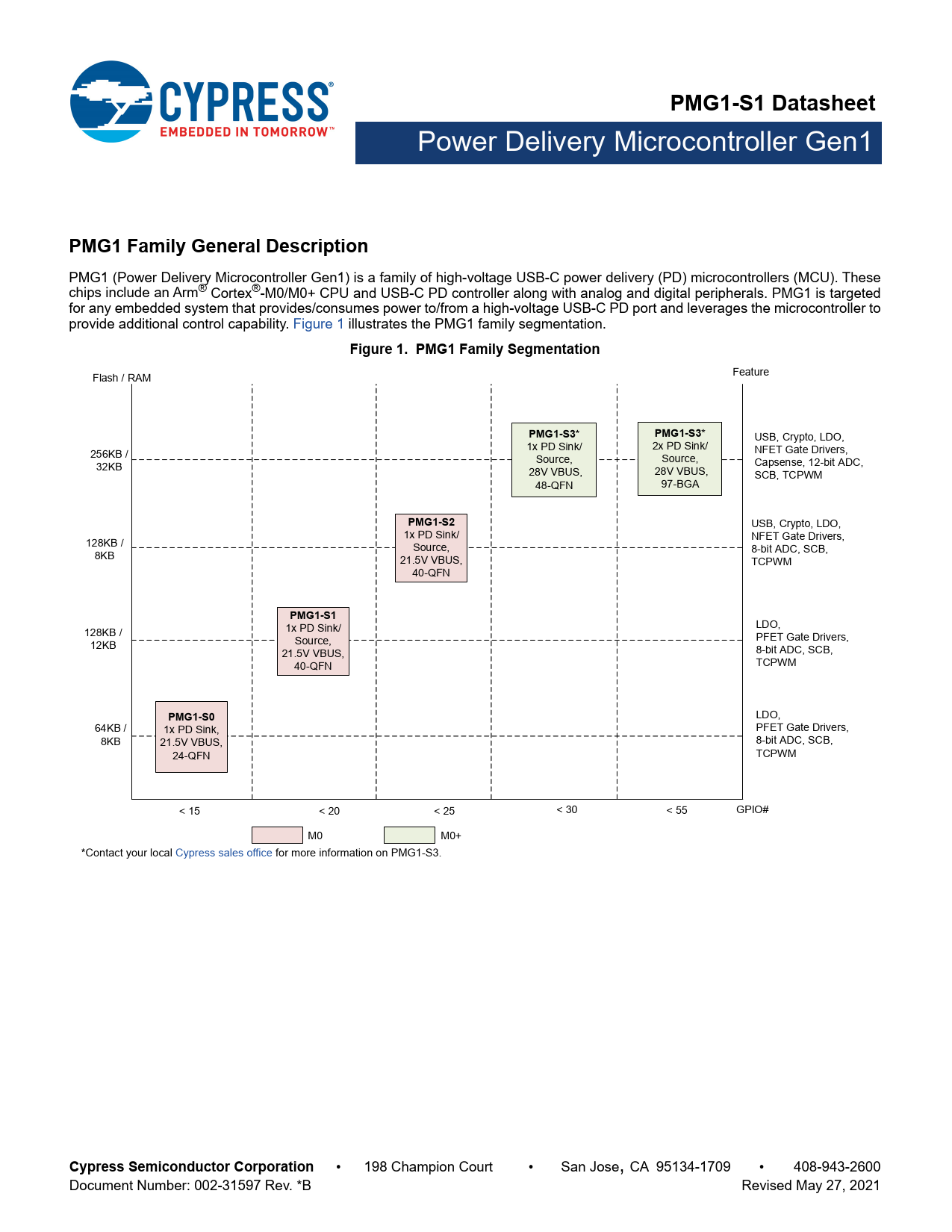 PMG1-S1 Datasheet, Power Delivery Microcontroller Gen1 PMG1 Family General Description
