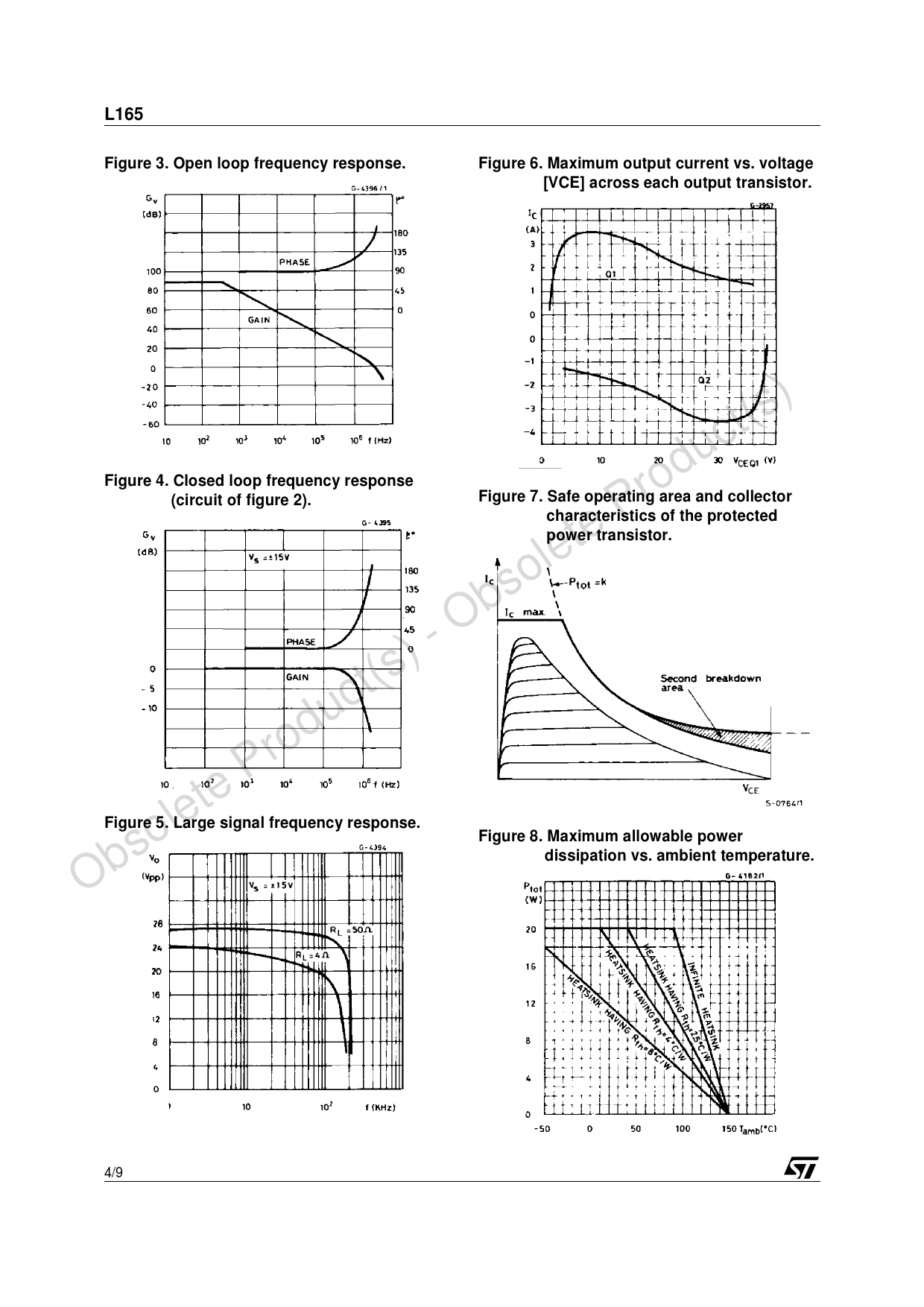 L165. Figure 3. Open loop frequency response. Figure 6. Maximum output current vs. voltage