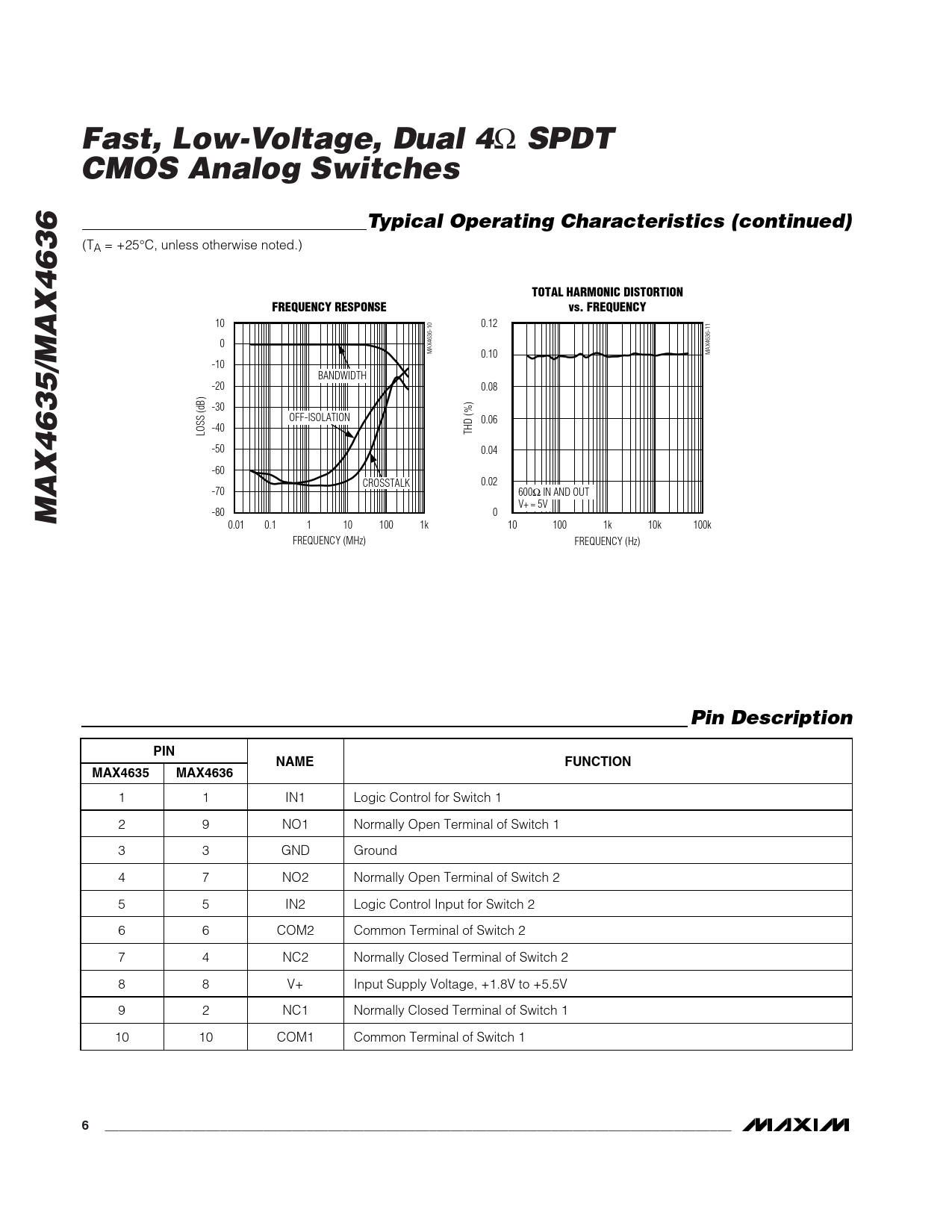 Pin Description PIN NAME FUNCTION MAX4635 MAX4636