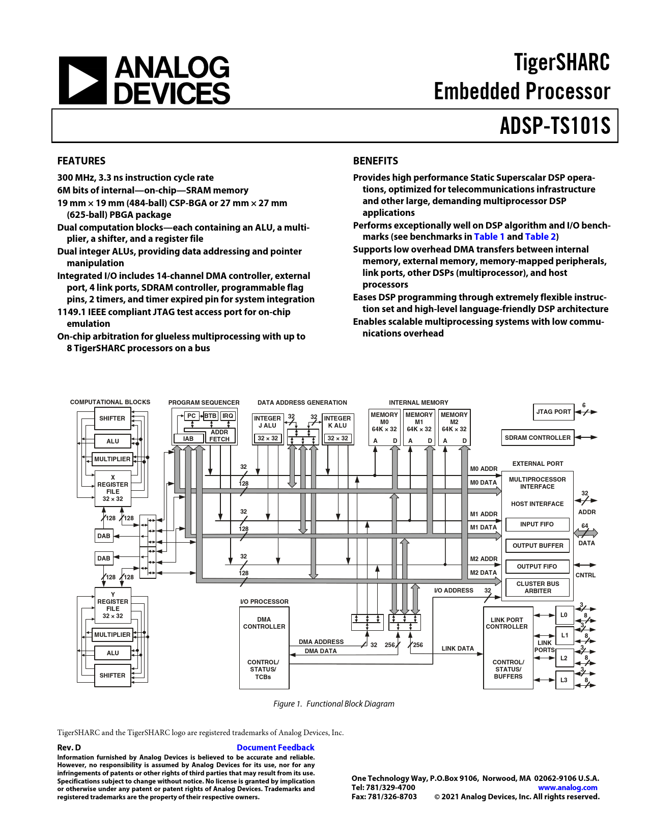 Figure 1. Functional Block Diagram TigerSHARC and the TigerSHARC logo are registered trademarks of Analog Devices, Inc.