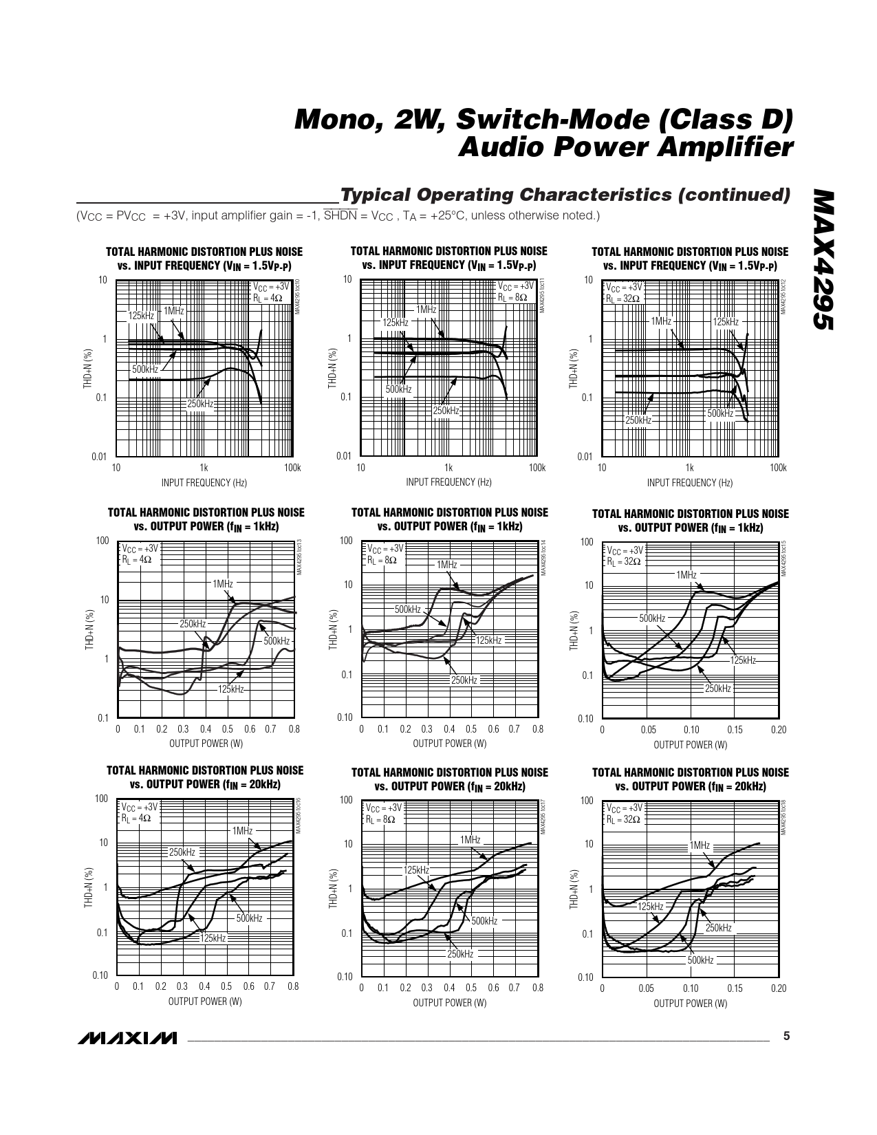 | Pages / Page | 15 / 5 — Mono, 2W, Switch-Mode (Class D). Audio Power Amplifier. MAX4295. Typical … |