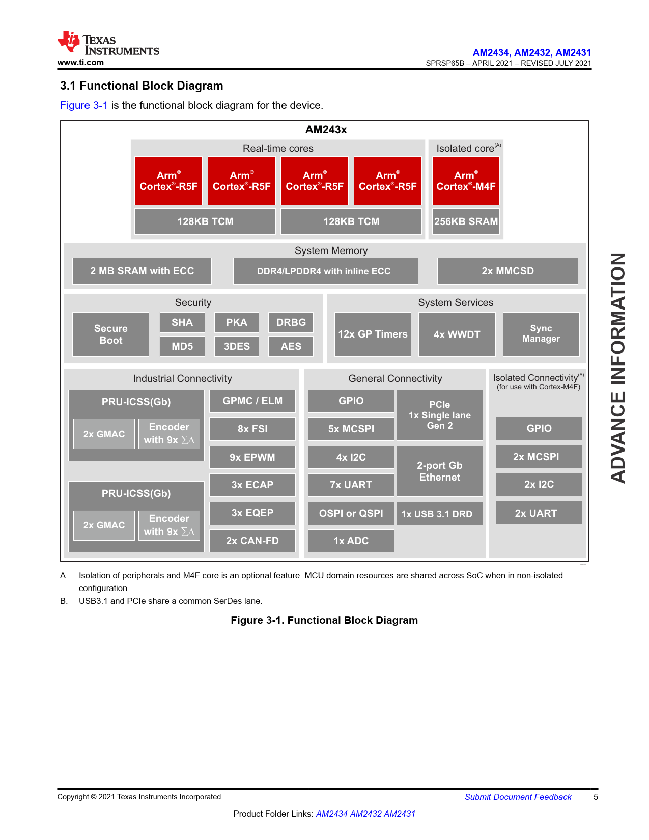 | Pages / Page | 316 / 5 — AM2434, AM2432. , AM2431. www.ti.com. 3.1 Functional Block Diagram. A … |