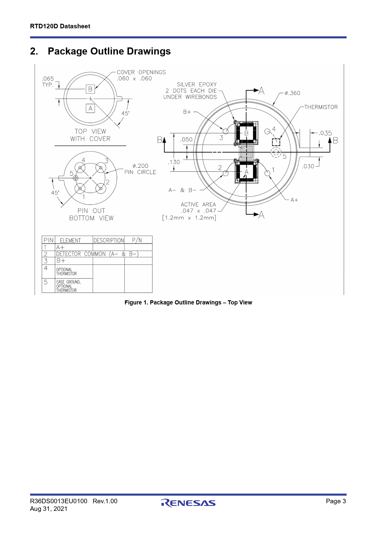 RTD120D Datasheet. 2. Package Outline Drawings. Figure 1. Package Outline Drawings – Top View