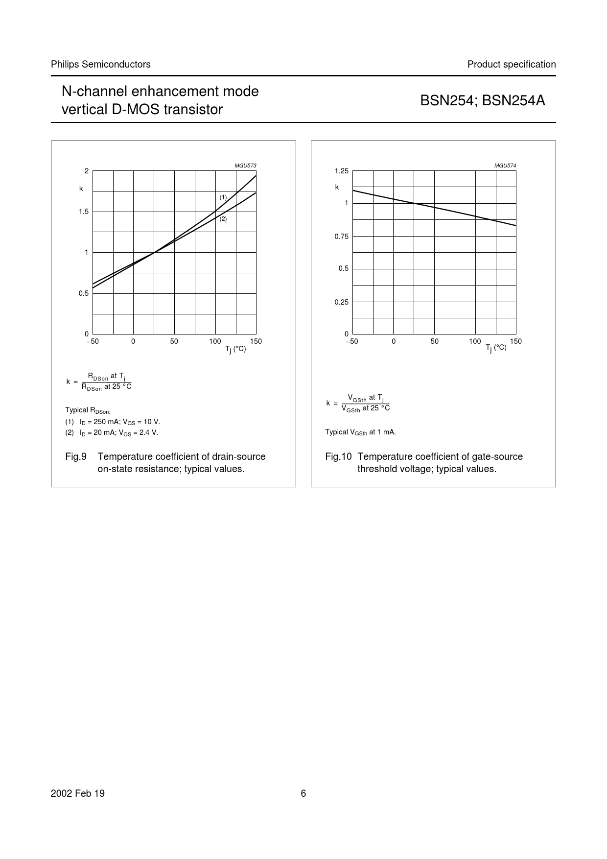 Philips Semiconductors Product specification N-channel enhancement mode BSN254; BSN254A vertical D-MOS transistor MGU573 MGU574 2 1.25