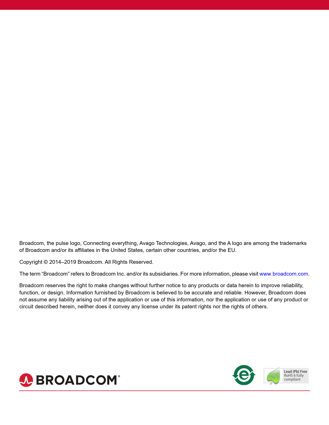 Broadcom,. the. pulse. logo,. Connecting. everything,. Avago. Technologies,. Avago,. and. the. A. logo. are. among. the. trademarks. of. Broadcom. and/or. its