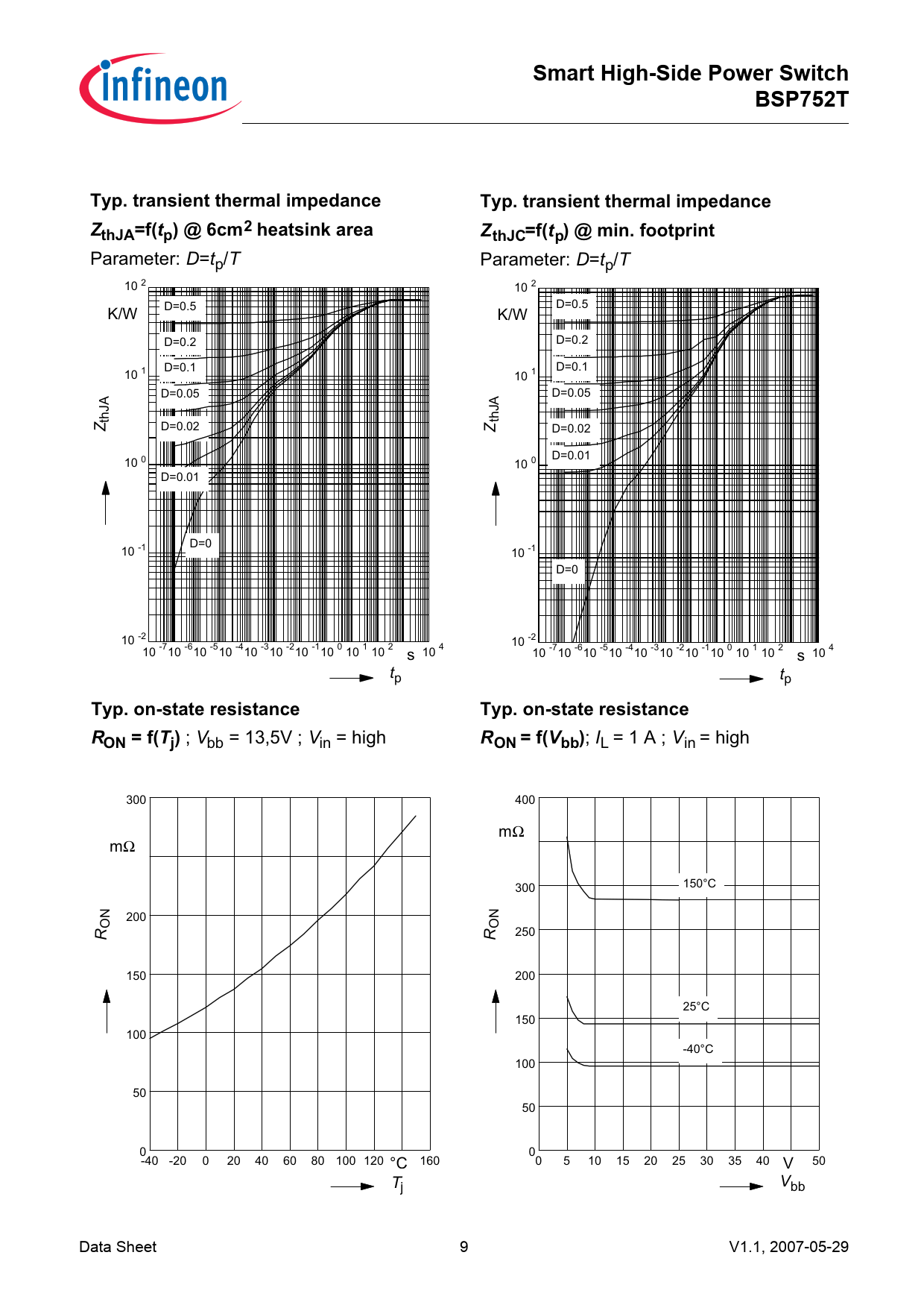 Smart High-Side Power Switch BSP752T 7\SWUDQVLHQWWKHUPDOLPSHGDQFH 7\SWUDQVLHQWWKHUPDOLPSHGDQFH = WK-$ IW S#FPKHDWVLQNDUHD = WK-& IW S#PLQIRRWSULQW