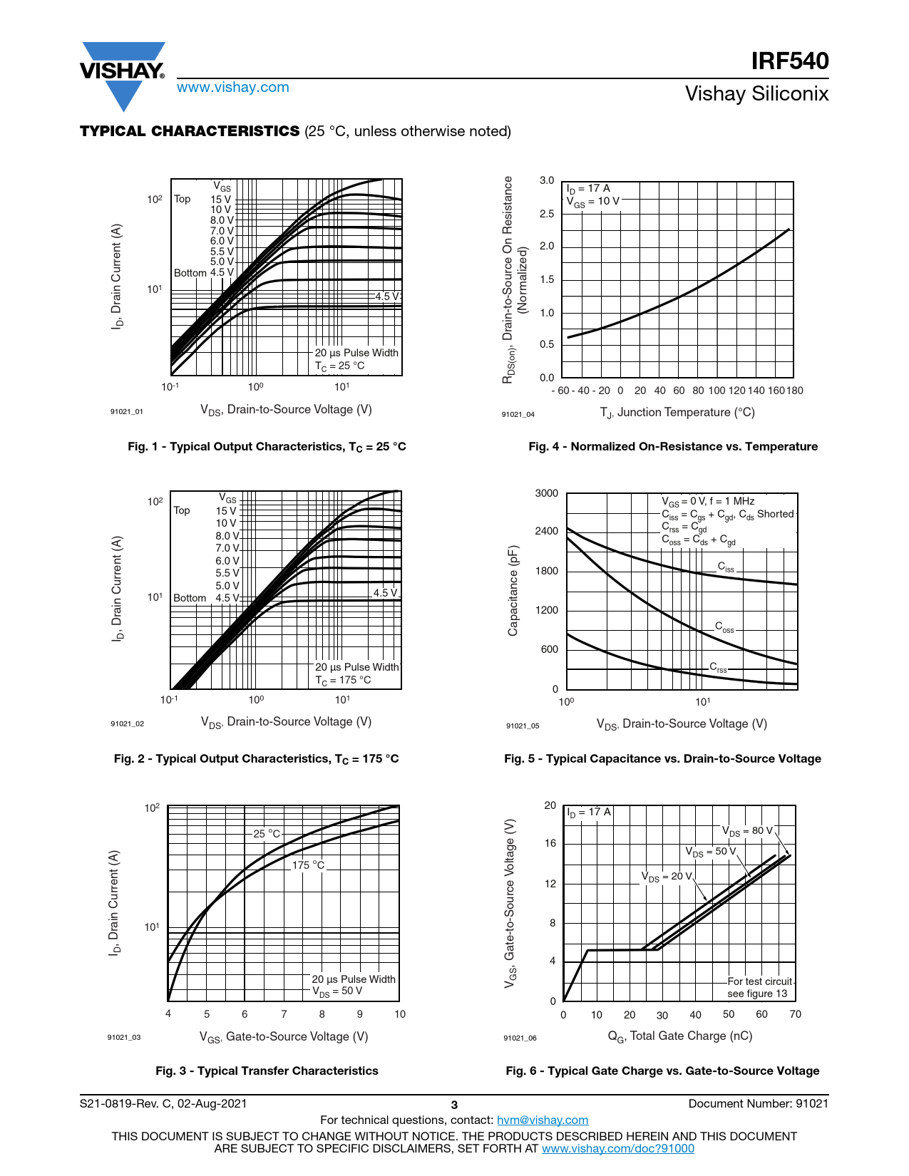 IRF540. TYPICAL CHARACTERISTICS. Fig. 1 - Typical Output Characteristics, TC = 25 °C
