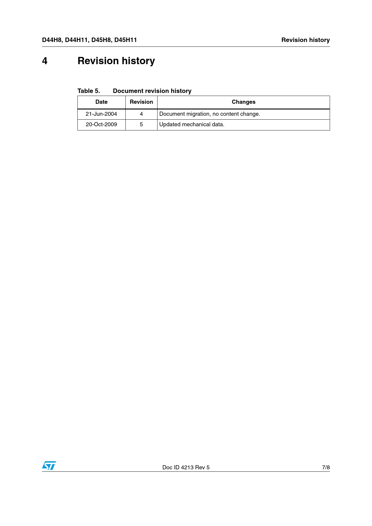| Pages / Page | 8 / 7 — D44H8, D44H11, D45H8, D45H11. Revision history. 4 Revision. history. … |