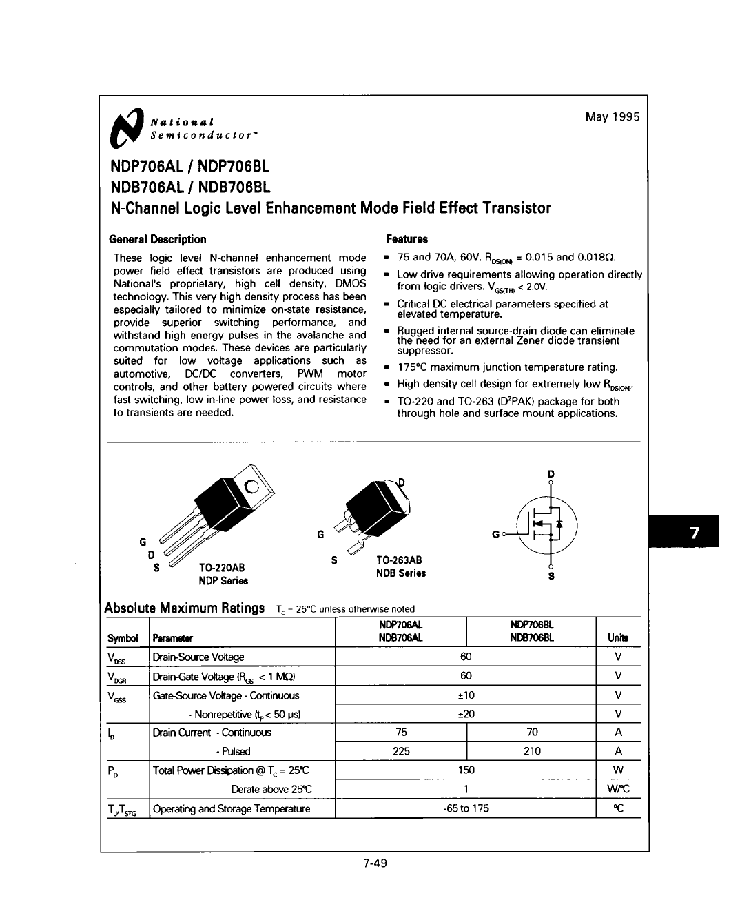 Datasheet NDP706AL, NDP706BL, NDB706AL, …
