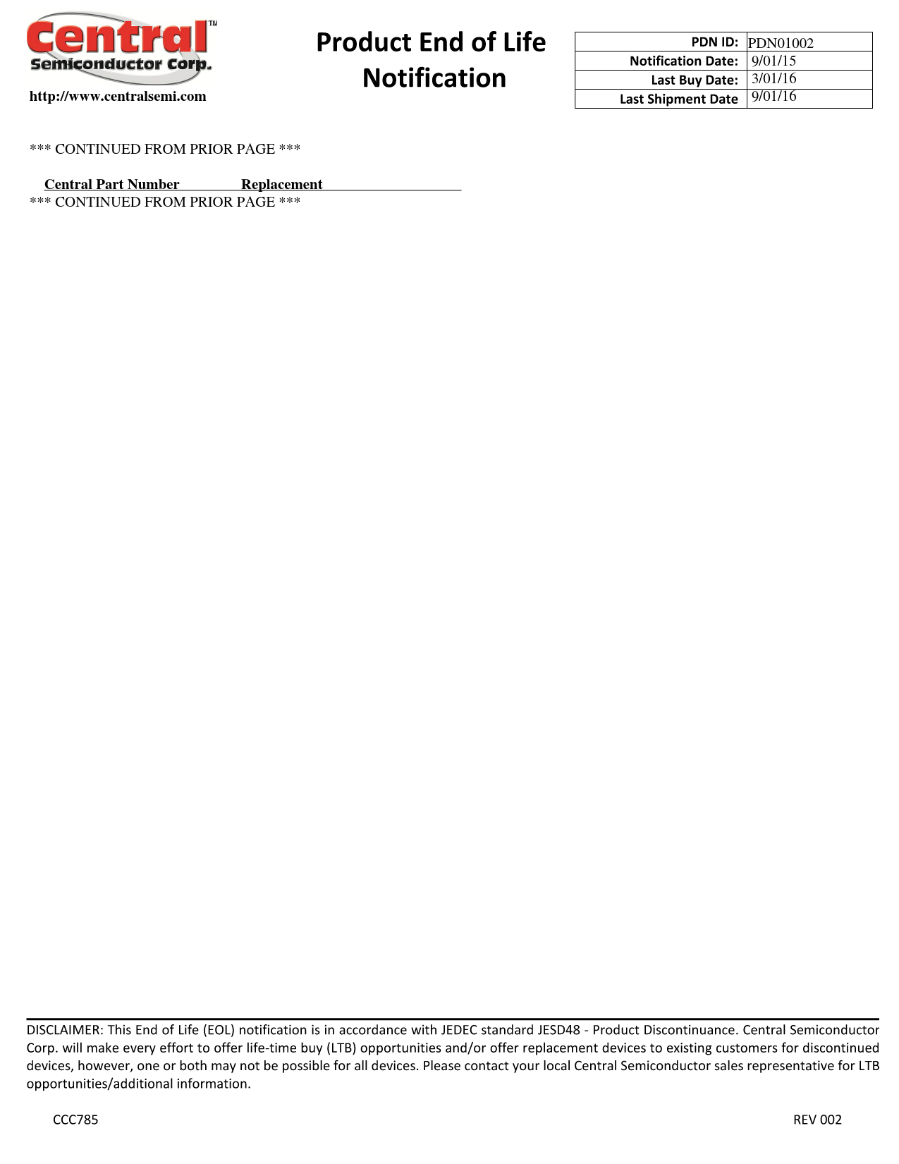 — http://www.centralsemi.com. Central Part Number. Replacement