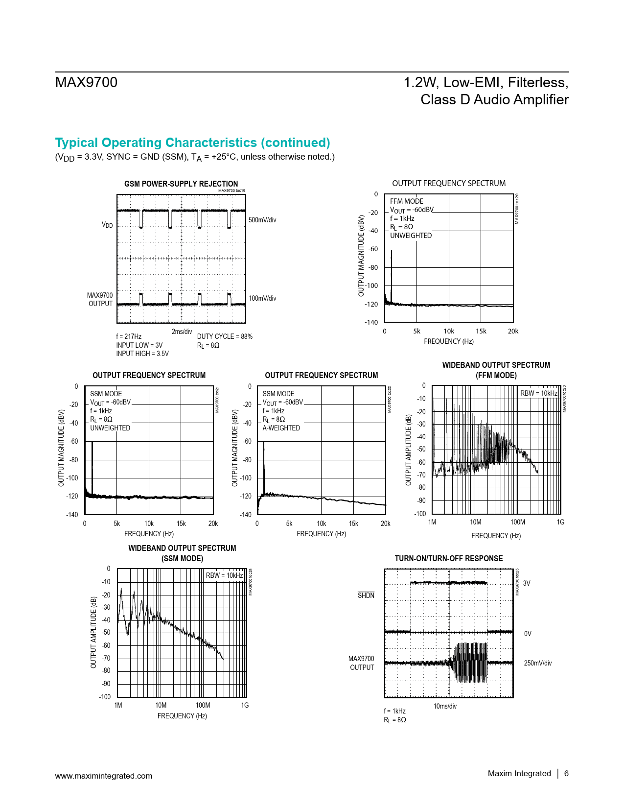 0 RBW = 10kHz -10 3V MAX9700 toc24 -20 MAX9700 toc25 SHDN -30 -40 -50 0V -60 -70 MAX9700 OUTPUT AMPLITUDE (dB) 250mV/div -80 OUTPUT -90 -100 1M 10M 100M 1G 10ms/div f = 1kHz FREQUENCY (Hz) RL = 8Ω www.maximintegrated.com Maxim Integrated │ 6