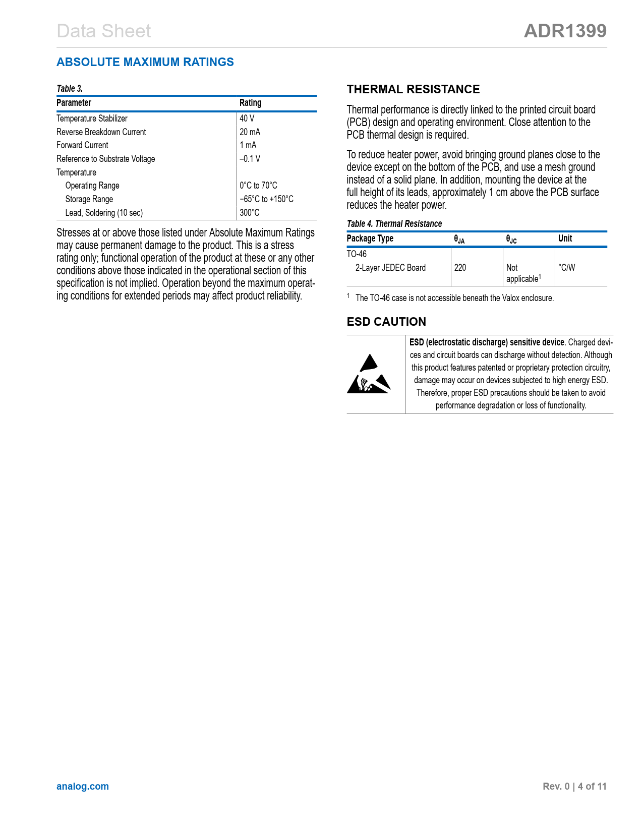 Pages / Page11 / 4 — ADR1399. ABSOLUTE MAXIMUM RATINGS. Table 3. THERMAL RESISTANCE. …