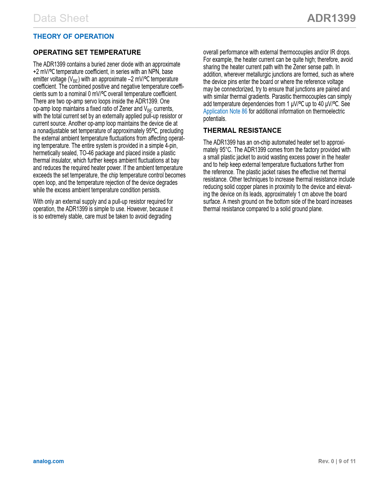 ADR1399. THEORY OF OPERATION. OPERATING SET TEMPERATURE. THERMAL RESISTANCE. analog.com. Rev. 0 | 9 of 11