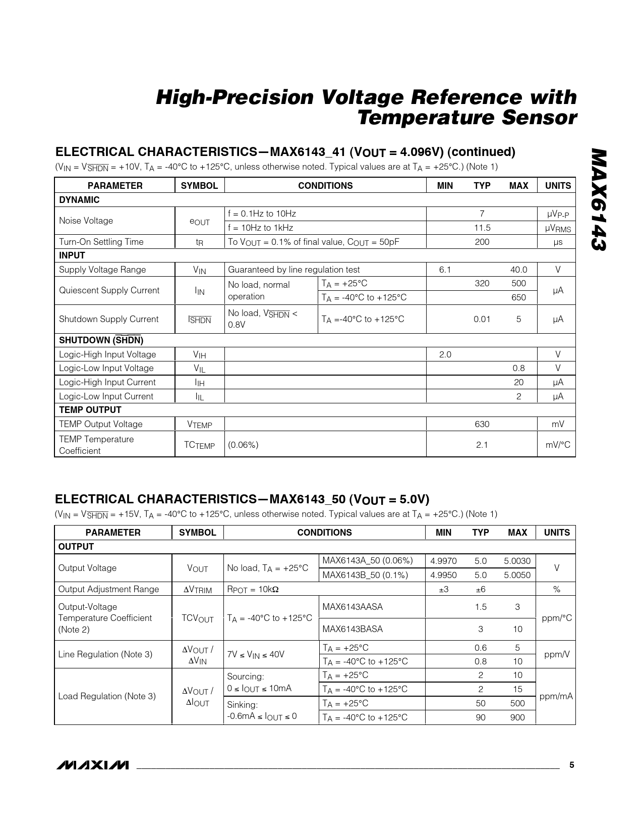 High-Precision Voltage Reference with Temperature Sensor MAX6143 ELECTRICAL CHARACTERISTICS—MAX6143_41 (VOUT = 4.096V) (continued)