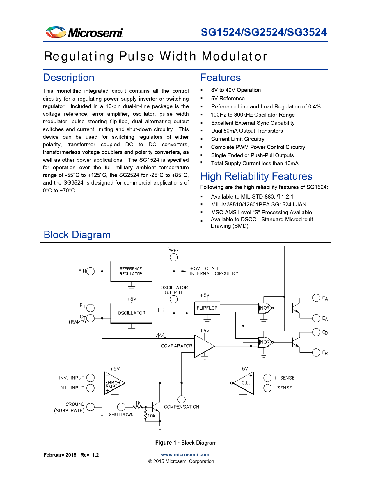 SG1524/SG2524/SG3524. Regulating Pulse Width Modulator. Figure 1 ·. February 2015 Rev. 1.2. www.microsemi.com