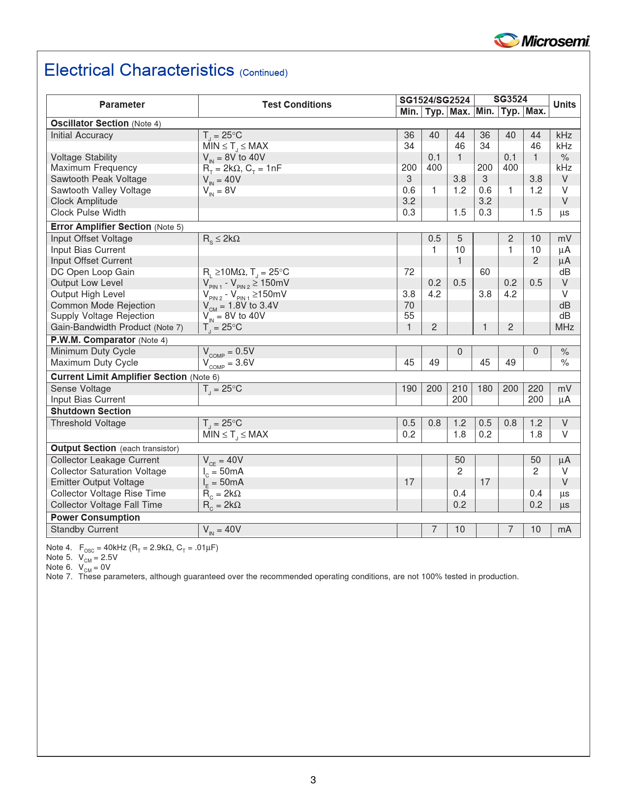 Pages / Page9 / 3 — SG1524/SG2524. SG3524. Parameter. Test Conditions. Units. Min. Typ. Max. …
