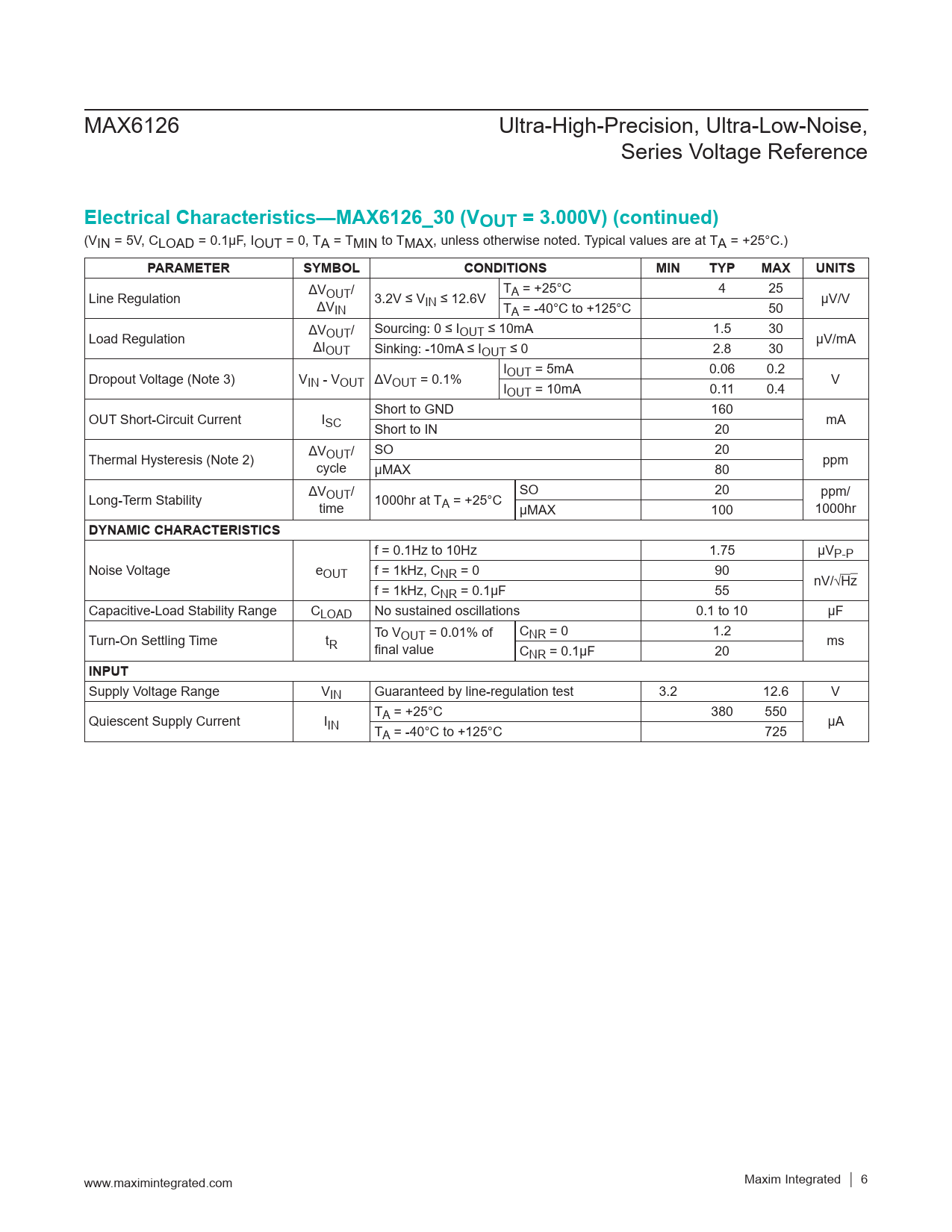 Pages / Page28 / 6 — Electrical Characteristics—MAX6126_30 (VOUT = 3.000V) (continued). …