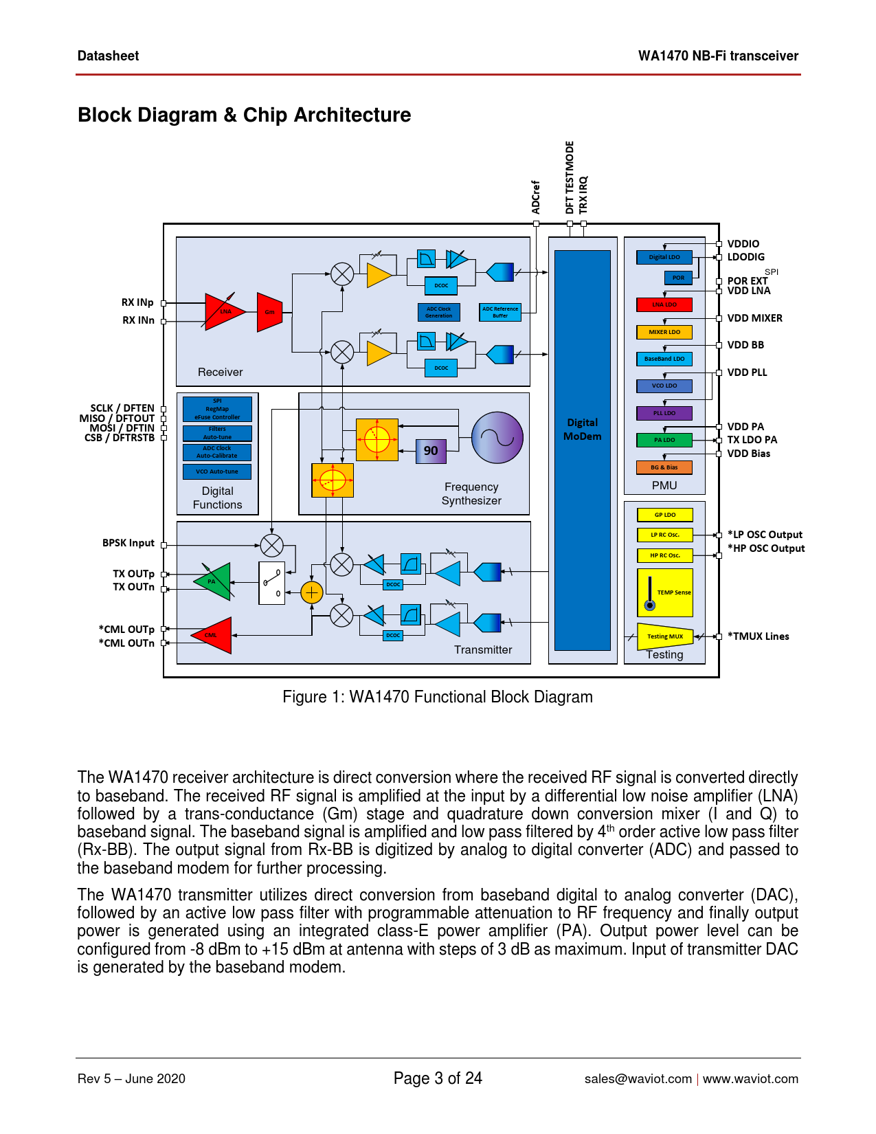 Pages / Page24 / 3 — Datasheet. WA1470 NB-Fi transceiver. Block Diagram & Chip …