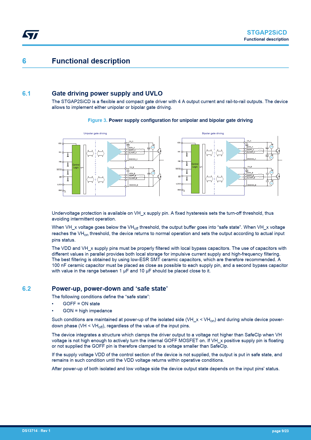 Pages / Page23 / 9 — STGAP2SiCD. Functional description. 6.1. Gate driving power supply and …