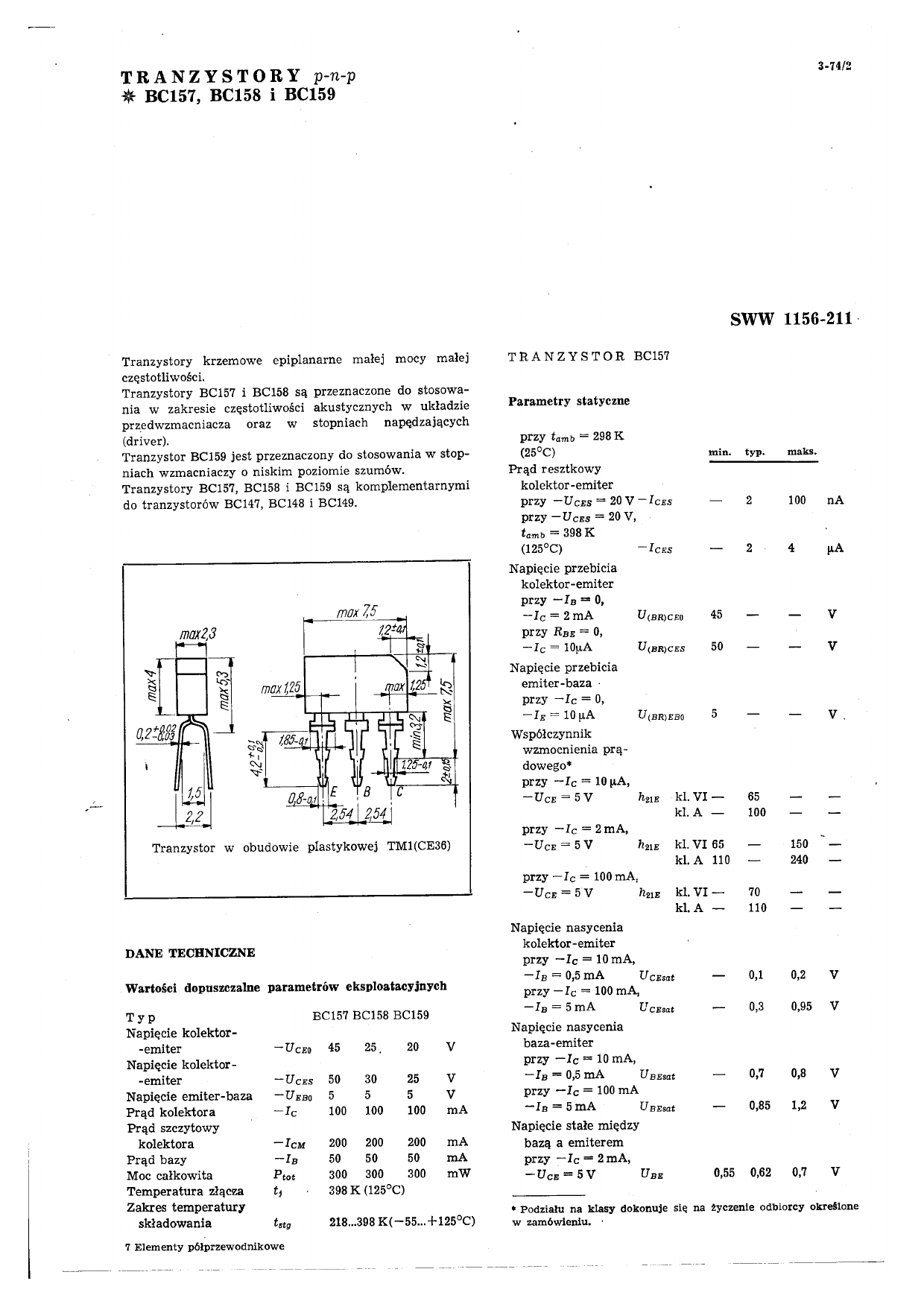 Datasheet BC157, BC158, BC159 (Unitra)