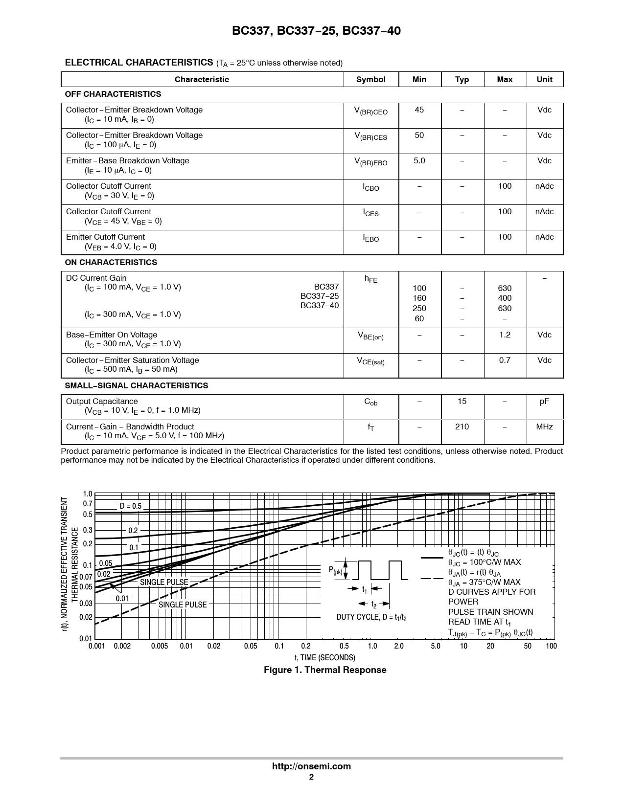 Datasheet BC337, BC337-25, BC337-40 (ON Semiconductor) - 2