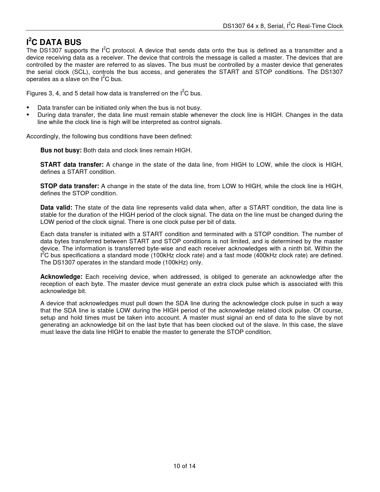 Pages / Page14 / 10 — I2C DATA BUS. Bus not busy:. START data transfer:. STOP data transfer:. …